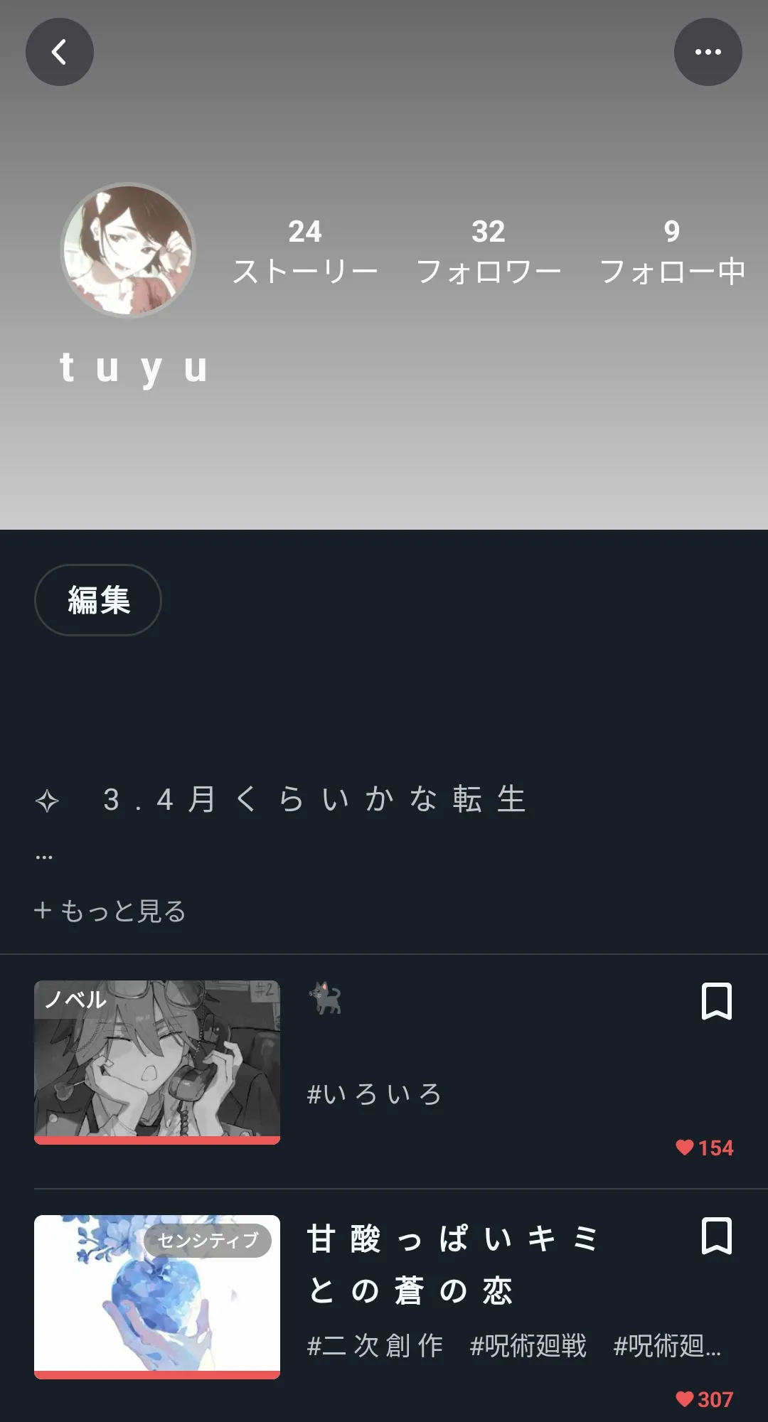 主 に じ ゅ じ ゅ の 二 次 創 作 と 一 次 創 作 を 書 か せ て も ら っ て ま す 。✍🏻
