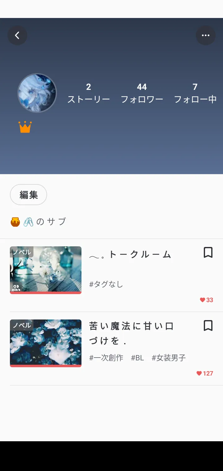 主 に 一 次 創 作 、 ノ ベ ル 、読 み 切 り 、ジ ャ ン ル は ミ ス テ リ ー や 、