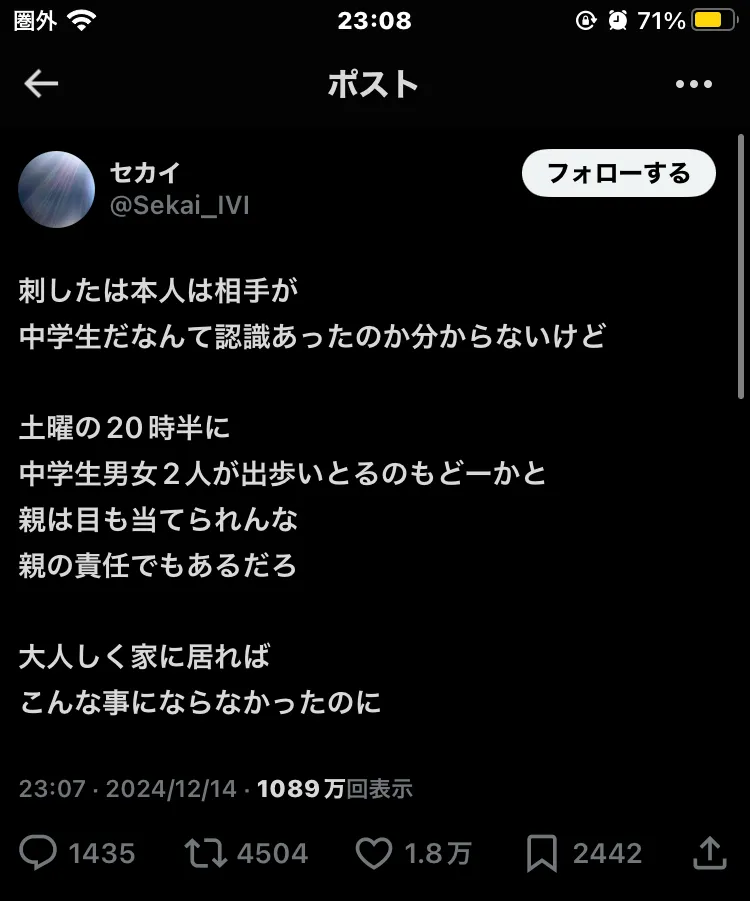 普通に考えて塾行くだけで刺されるとか想像つかんやろが((