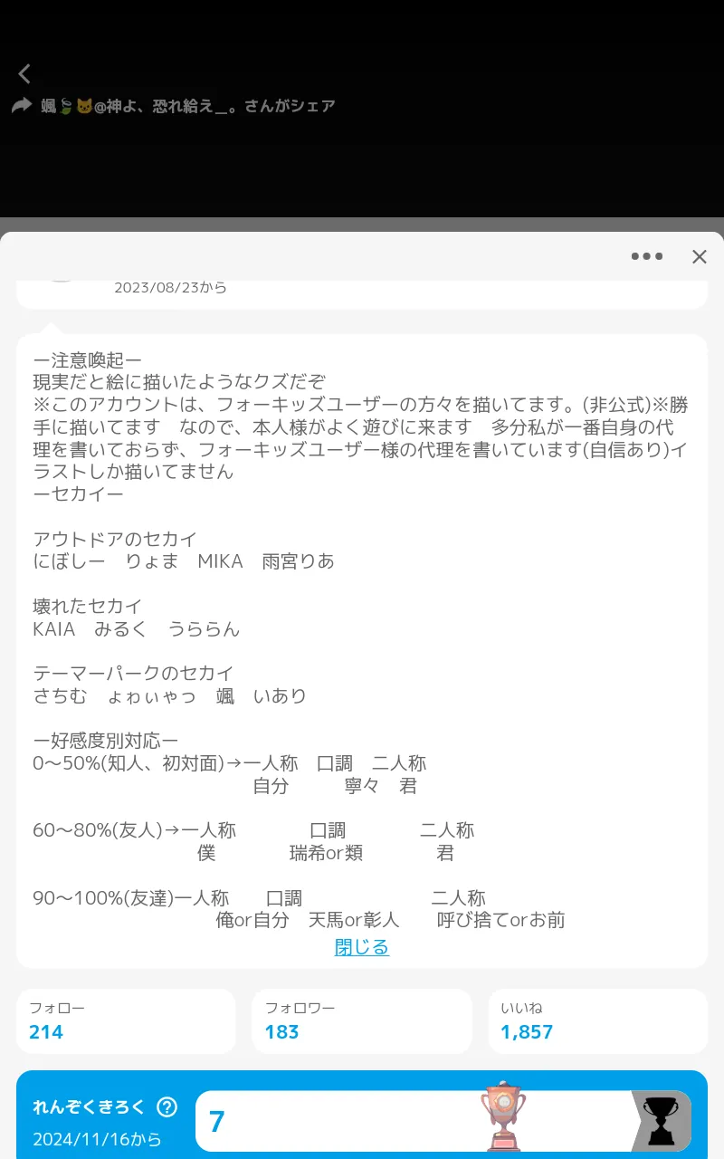 アウトドアのセカイのとこにある MIKA って私だよね!?!?utukiさんのに載ってる(?)のめっちゃ嬉しいんだが、、、(