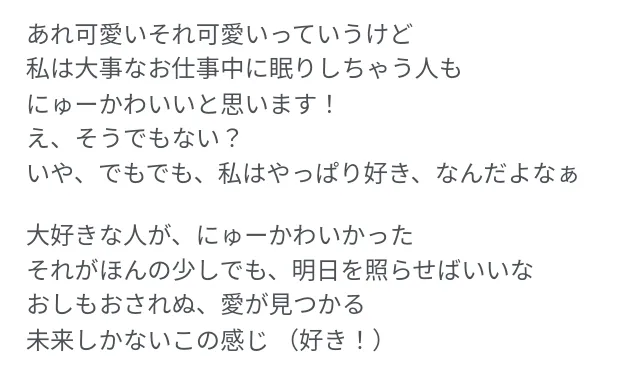 あれ可愛いそれ可愛いって言うけど私は悪魔の笑い方をして笑いを取るお母さんもにゅーかわいいと思います!え、そうでもない?いや、でもでも、私はやっぱり好き、なんだよなぁ身近な人がにゅーかわいかった〜〜笑うしかないこの感じ(怖い!)