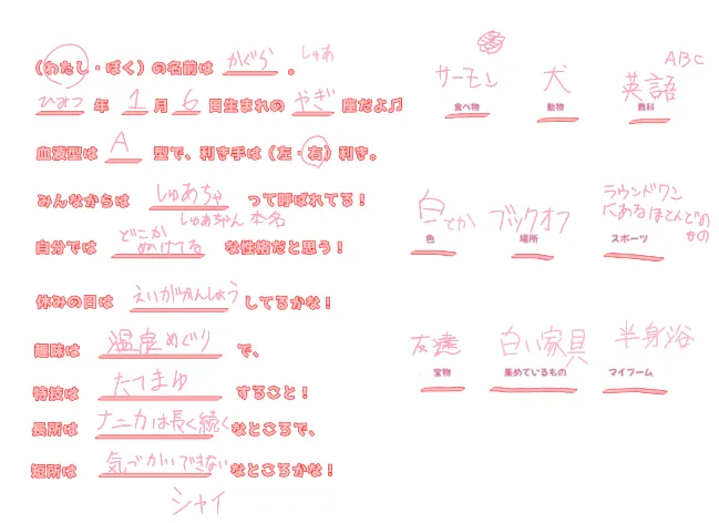 絵より字を書きたくなってきたのでプロフィール帳を書きます。