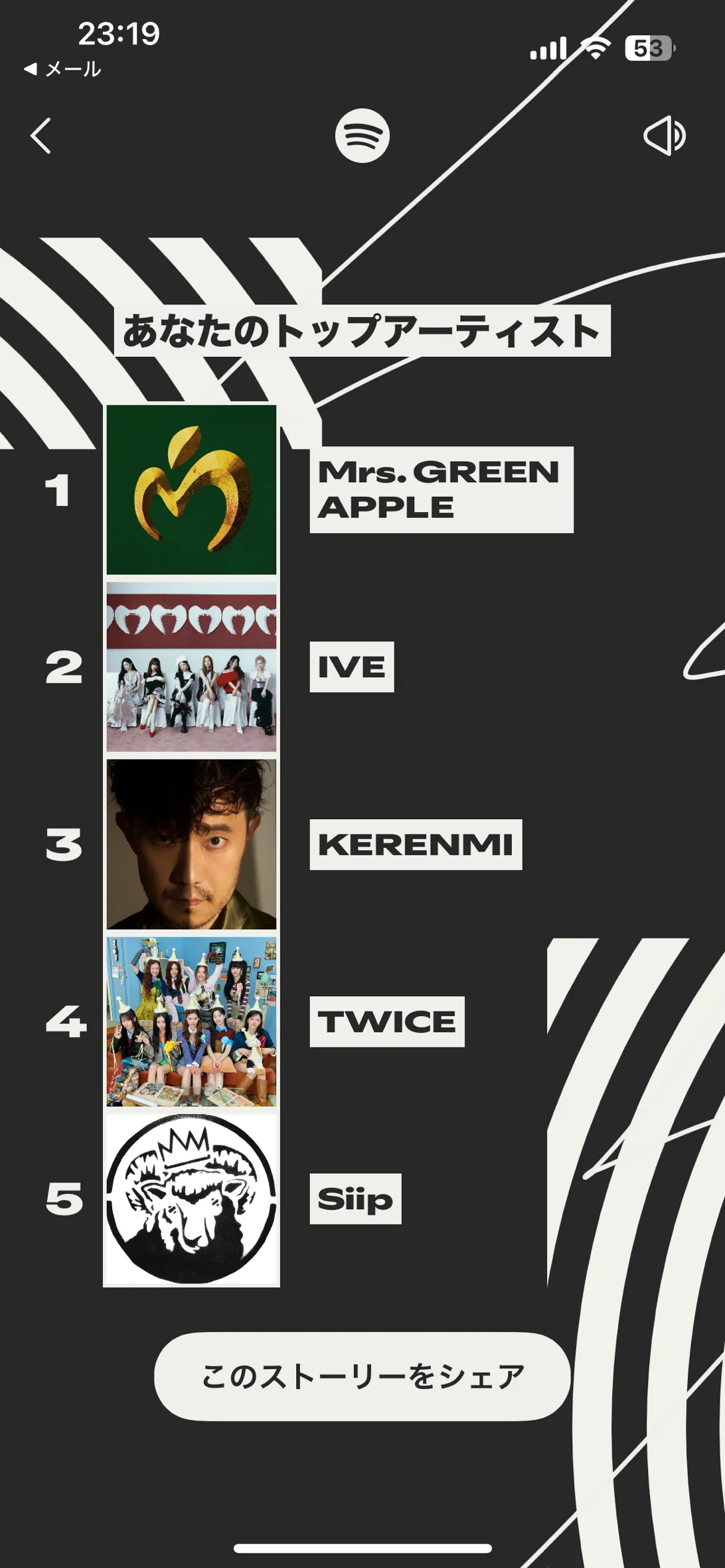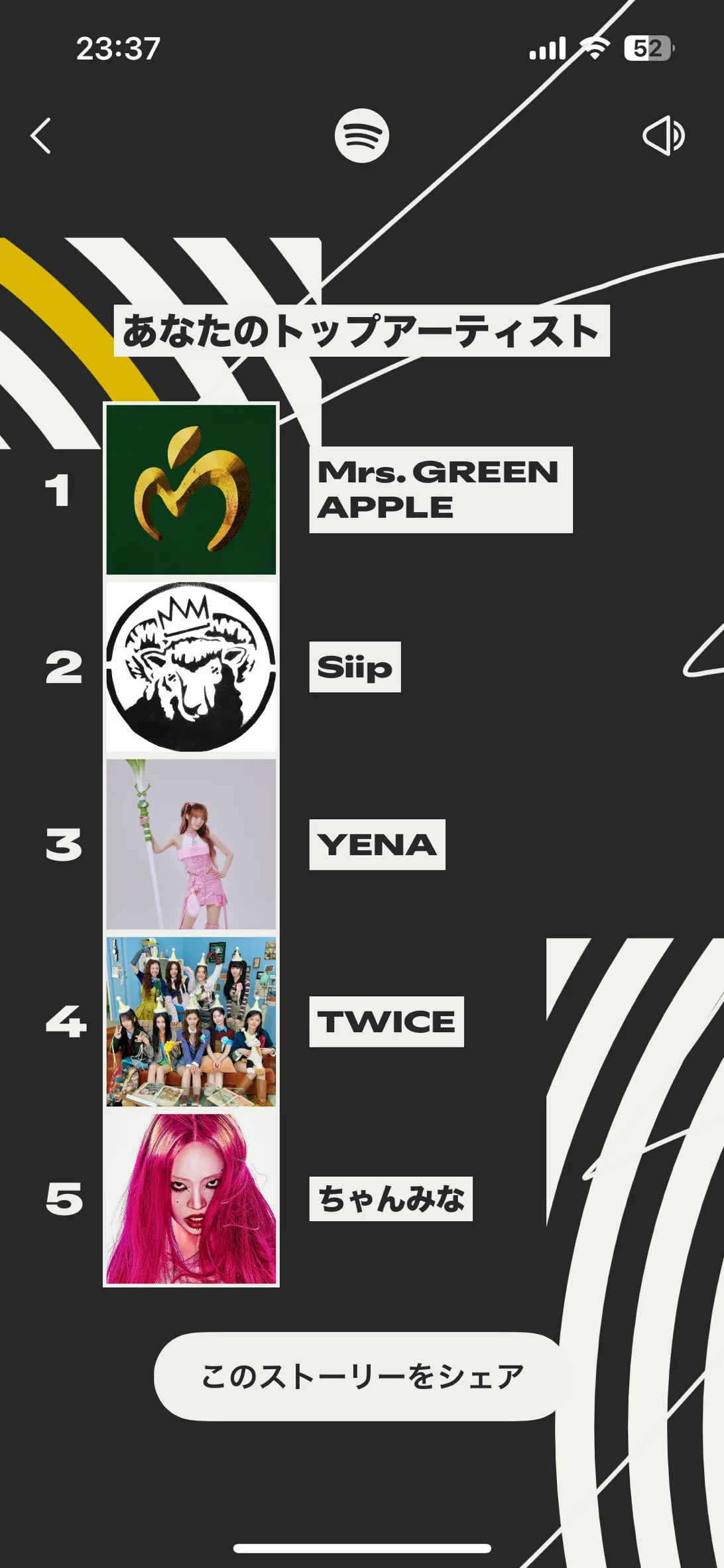 https://www.spotify.com/wrapped-share/e1acddad569c4cc79f99d438c07e52b2?si=mOxs42cQQuGls3NfrKcxJw&destination=datastories&feature=wrapped&lang=ja