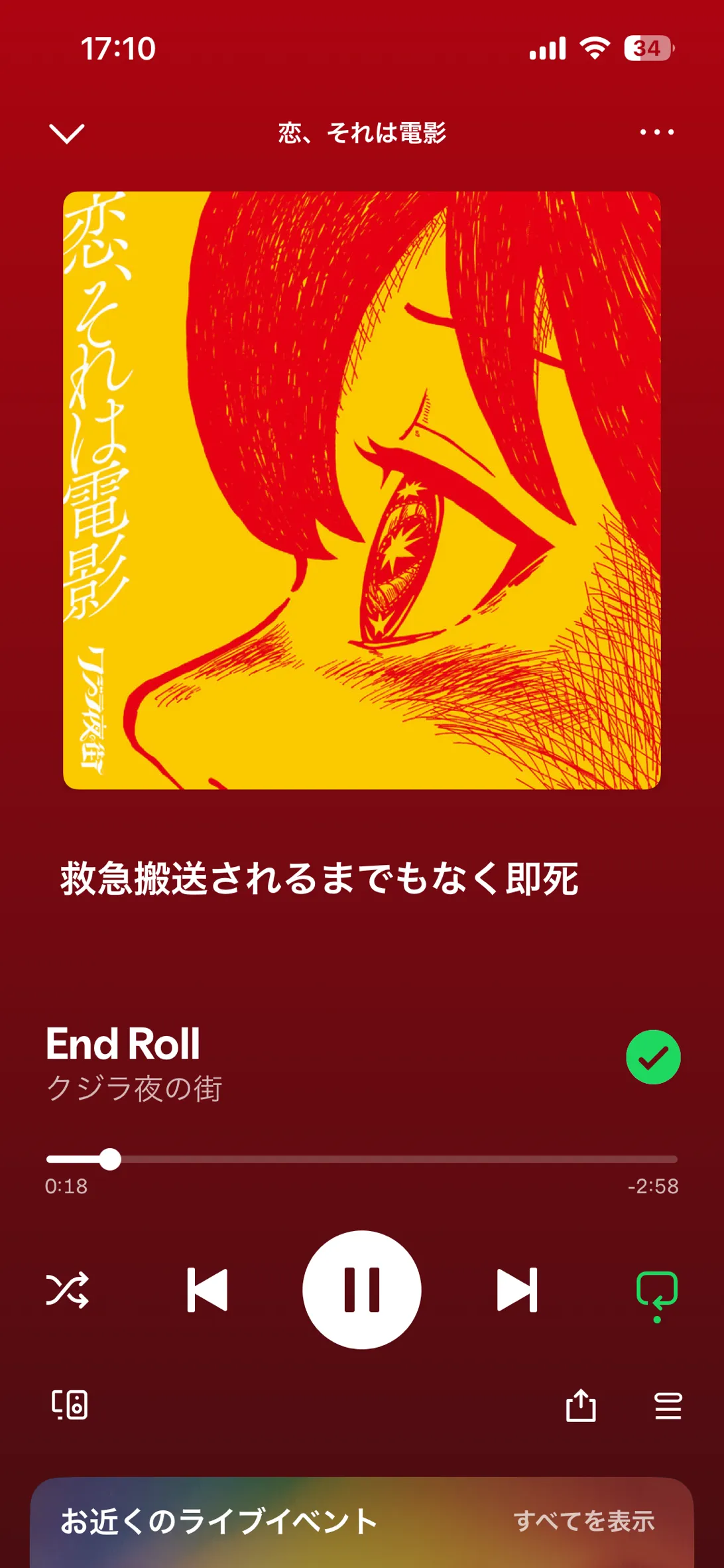 Spotifyもストーリーで歌詞でるんだ…………