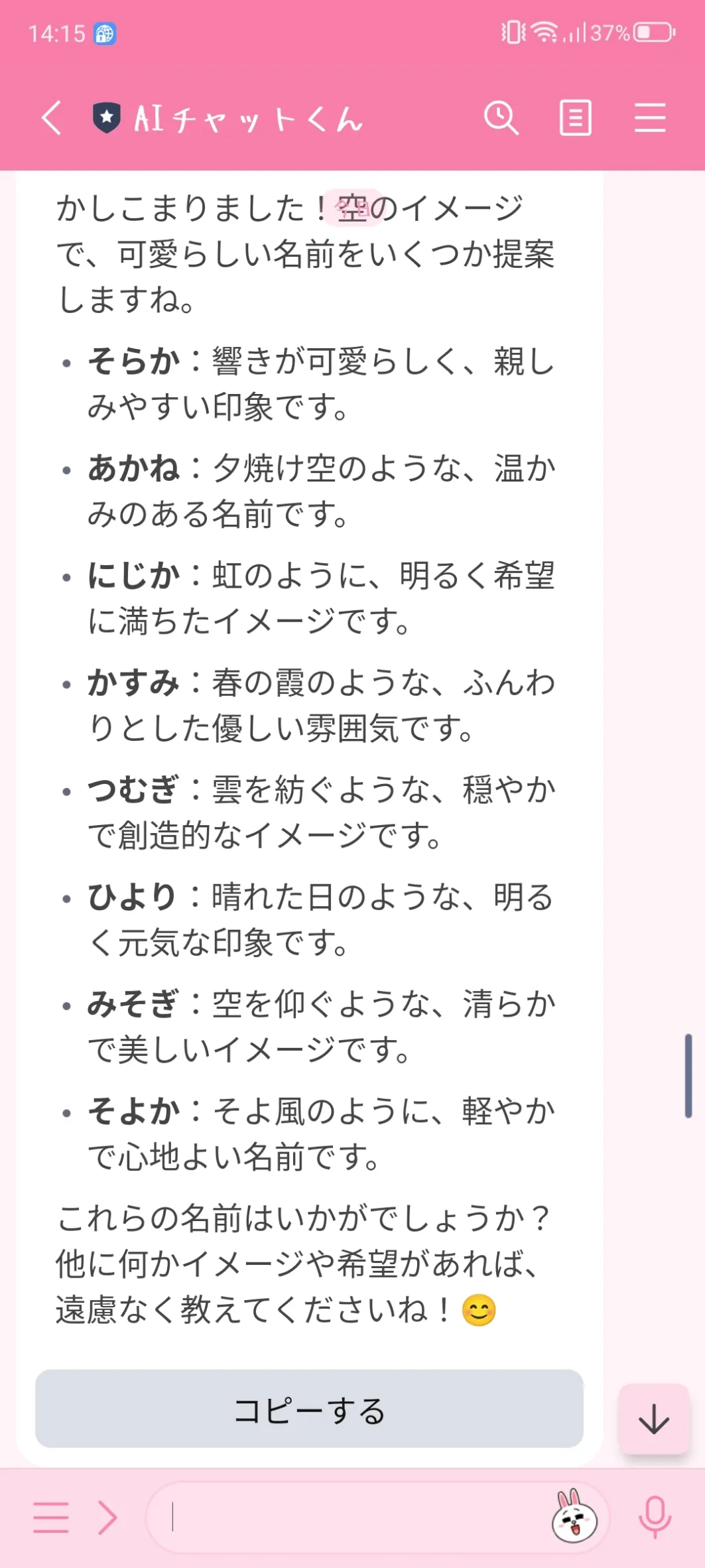LINEのAIにはこの候補出してもらった