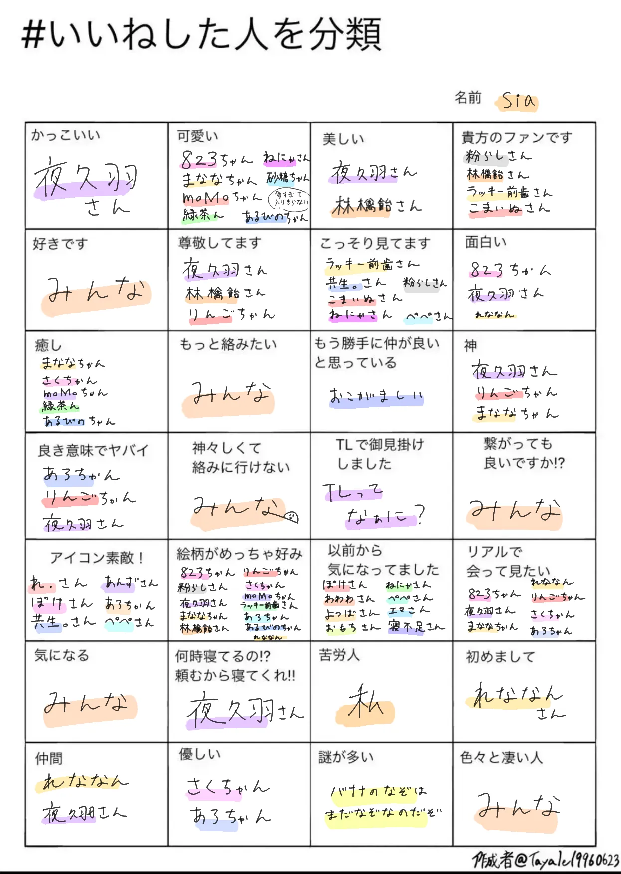 みんな以外にもしっかり全員の名前が出るようにしたつもりなんですけど抜けてる人いたらすみません🙇♀️いや26人は管理しきれない