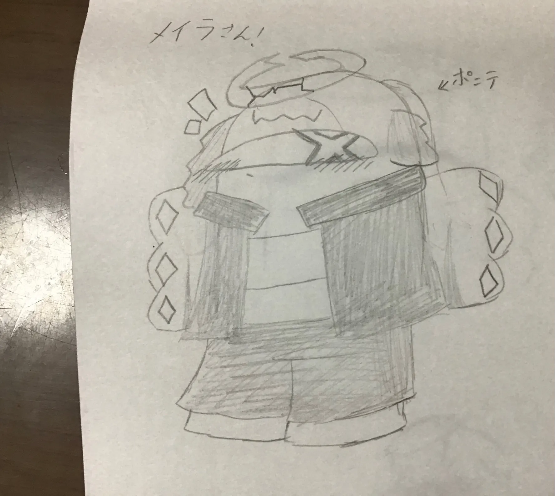 あと手は手袋してます、手には模様があるので…。