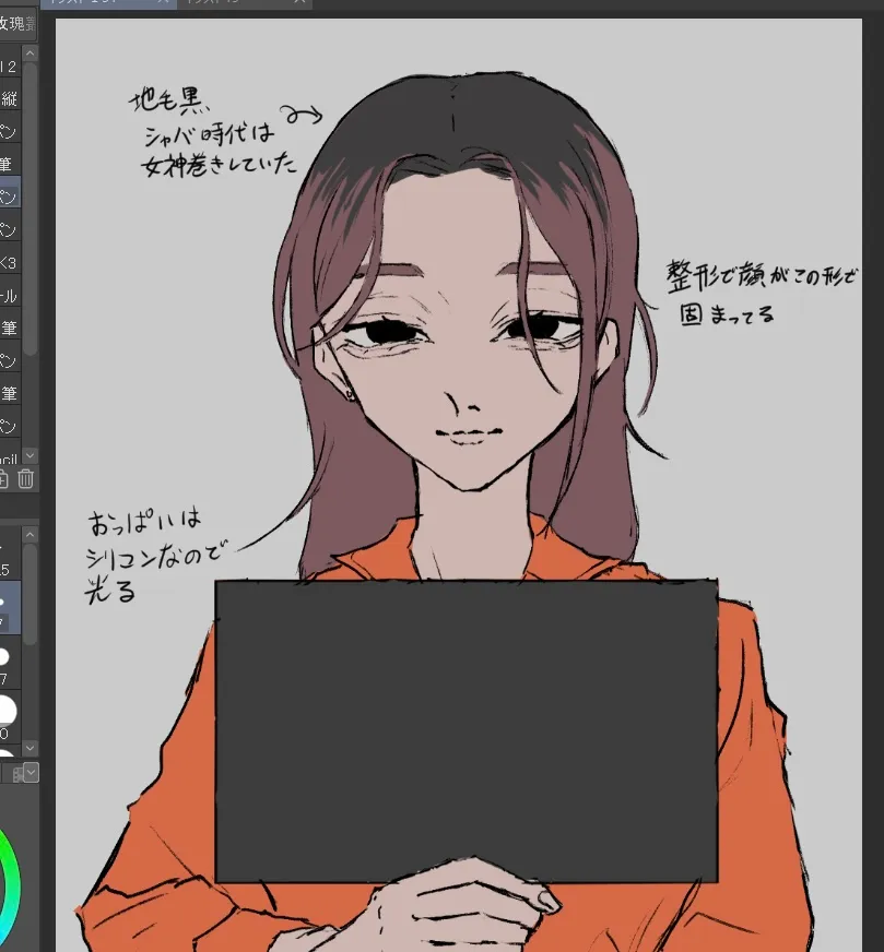 この前設定だけ書き出した受刑者魔法少女の変身前を描いてました