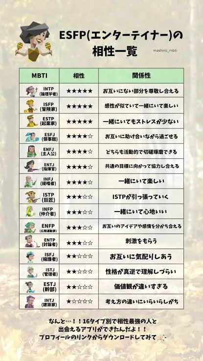 ESFP.2ESTP.1INFP.1ENFJ.1ENTP.1ISFP.1でしたわ