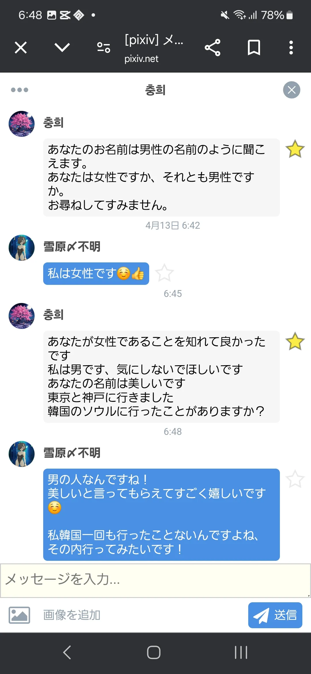pixivで韓国の方とお話してるんだけどねその方日本語お上手で分かりやすいんだよね。しかもなんか可愛い☺️なんであっちの人って可愛く感じるんだろう(っ ॑꒳ ॑c)