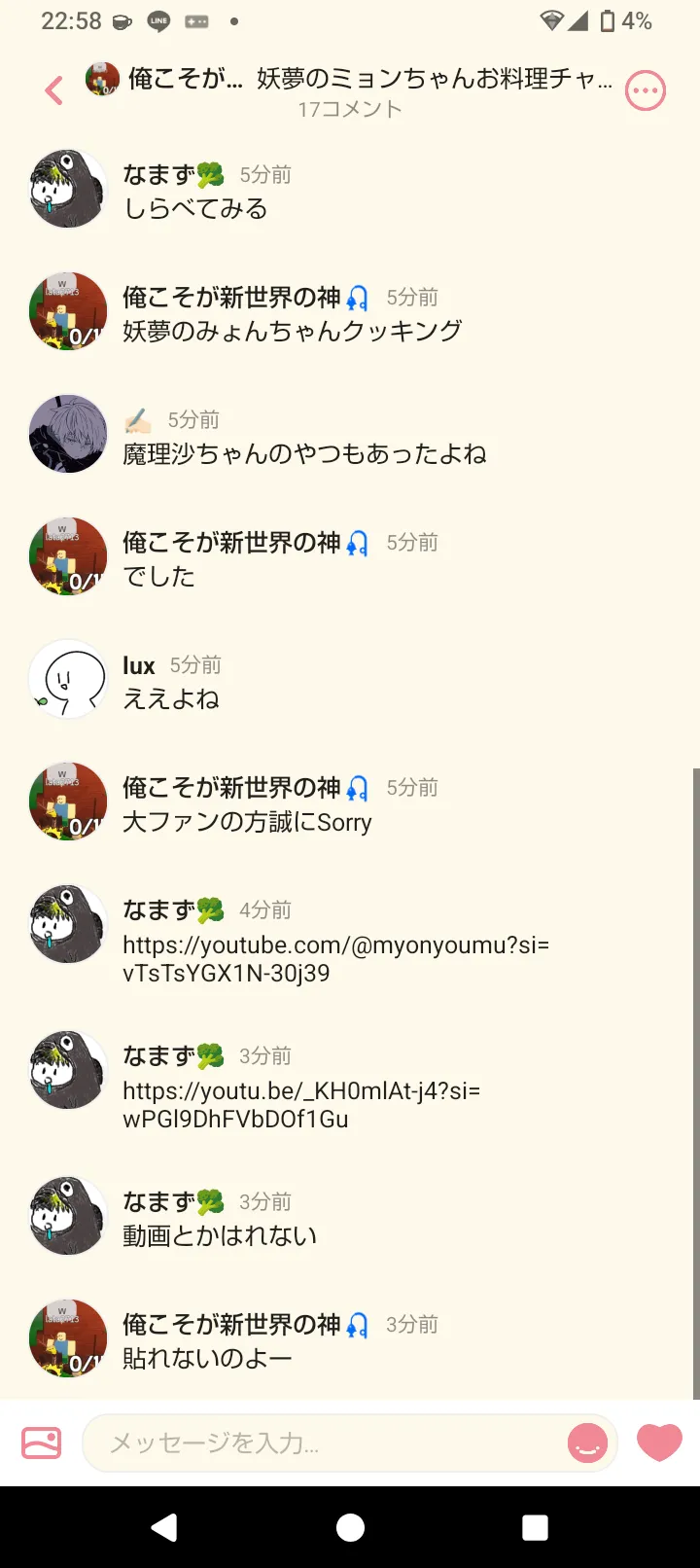 僕もさっきなんか送ってもた