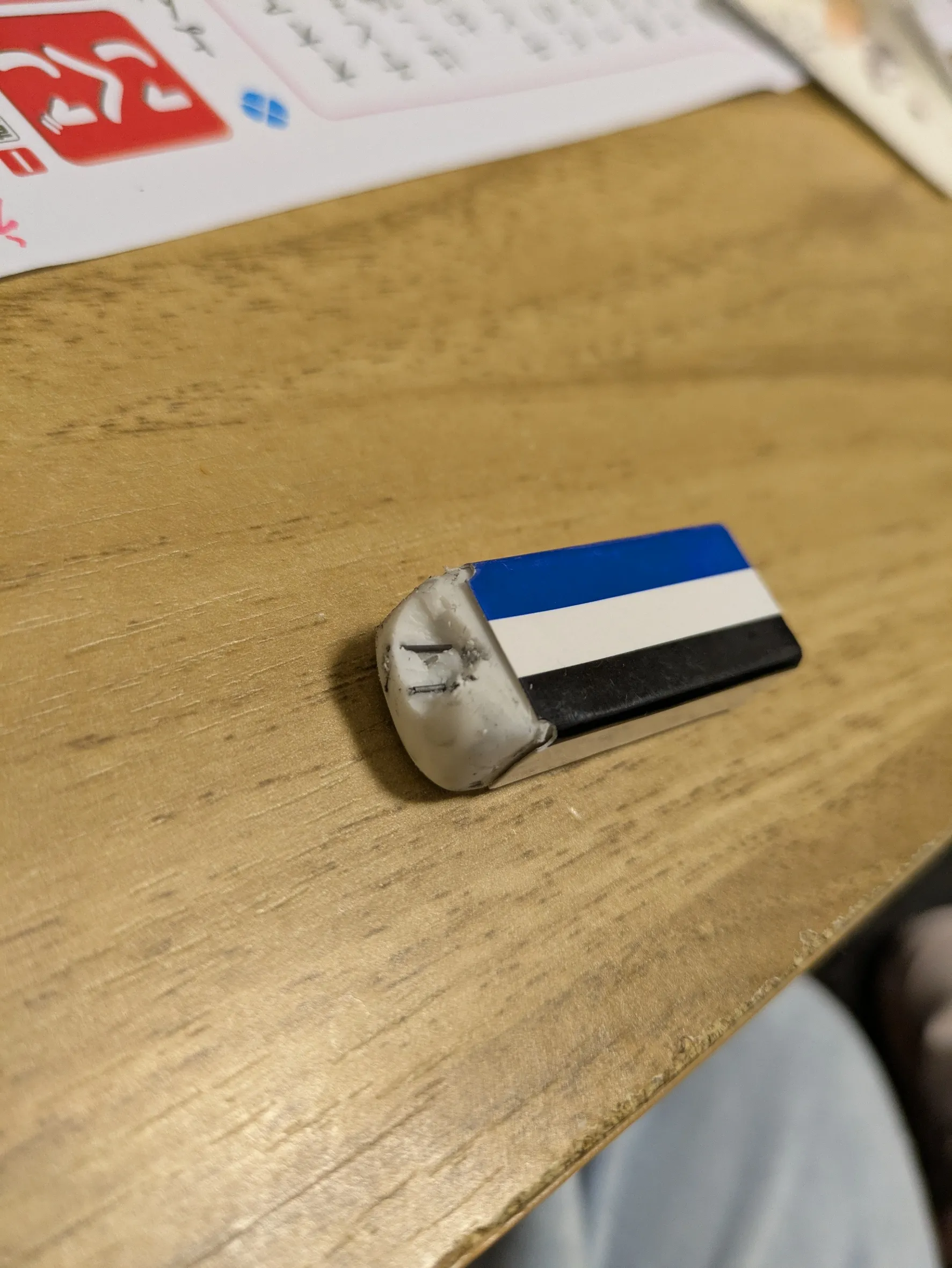 シャー芯ぶっ刺した消しゴムを弟に解体された図