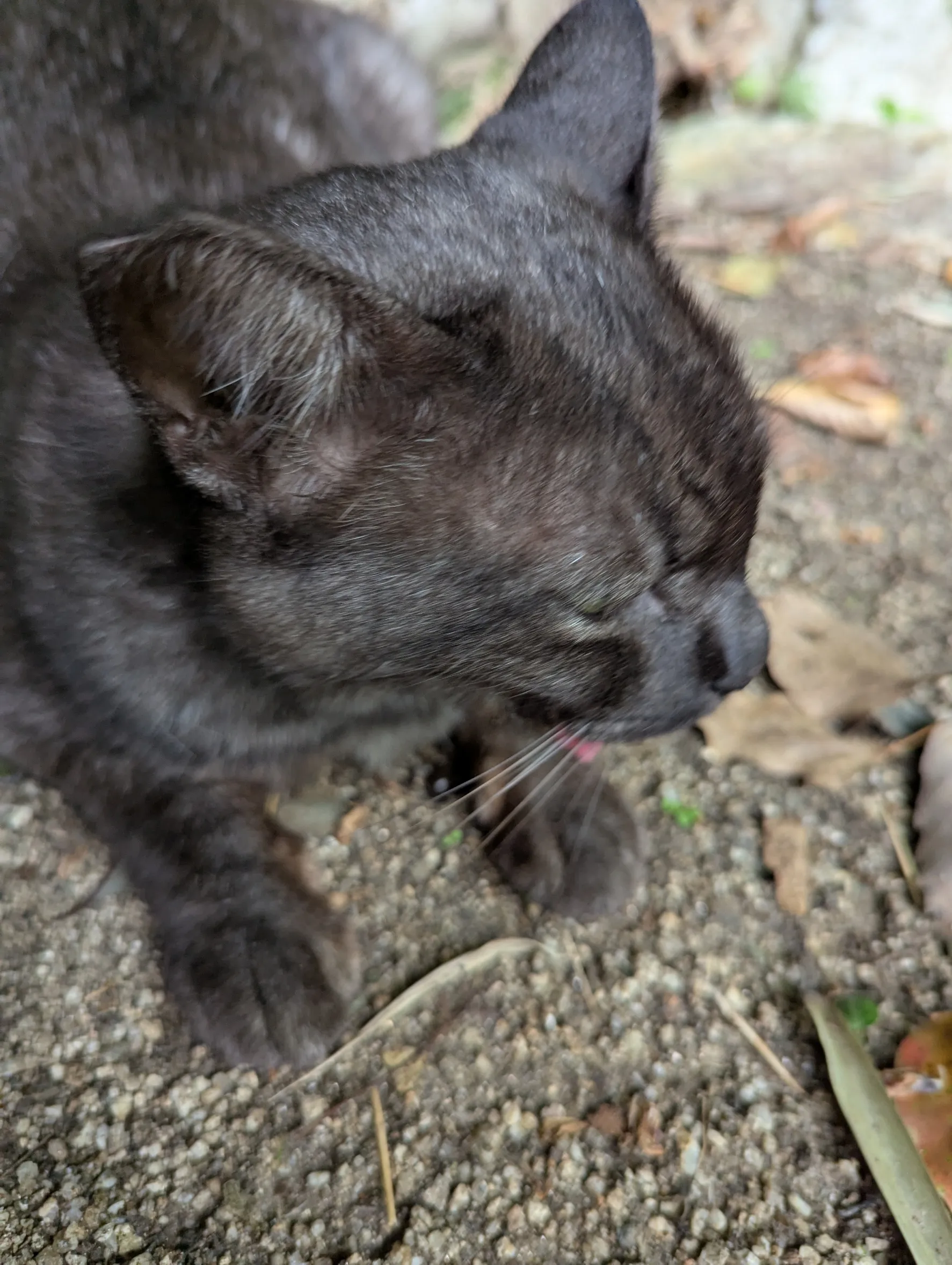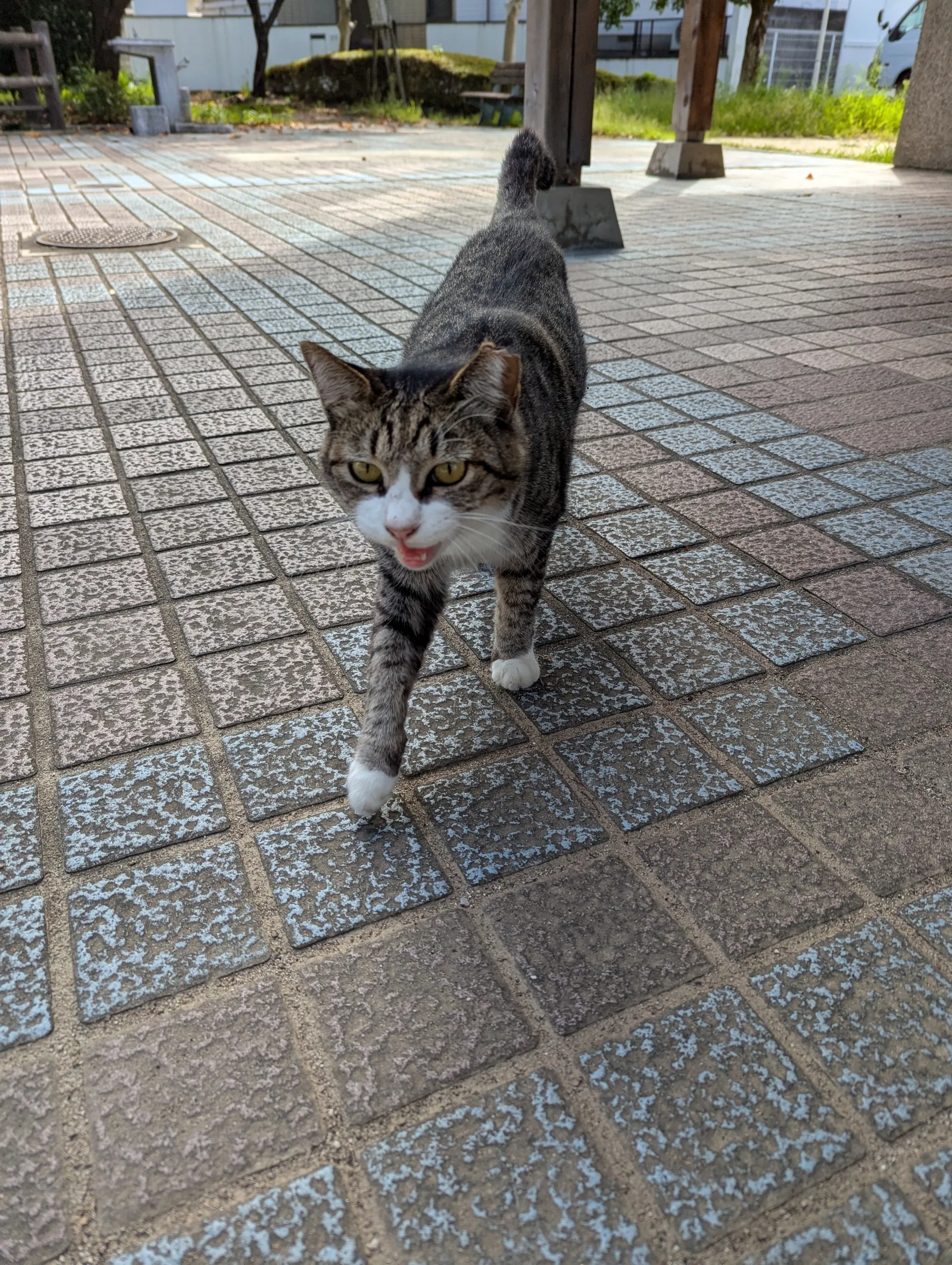 おはよう🖐️😃昨日は、地域猫ちゃん4匹と会えたよ。まずは、公園のアルちゃんと神社のミナミちゃん🐱
