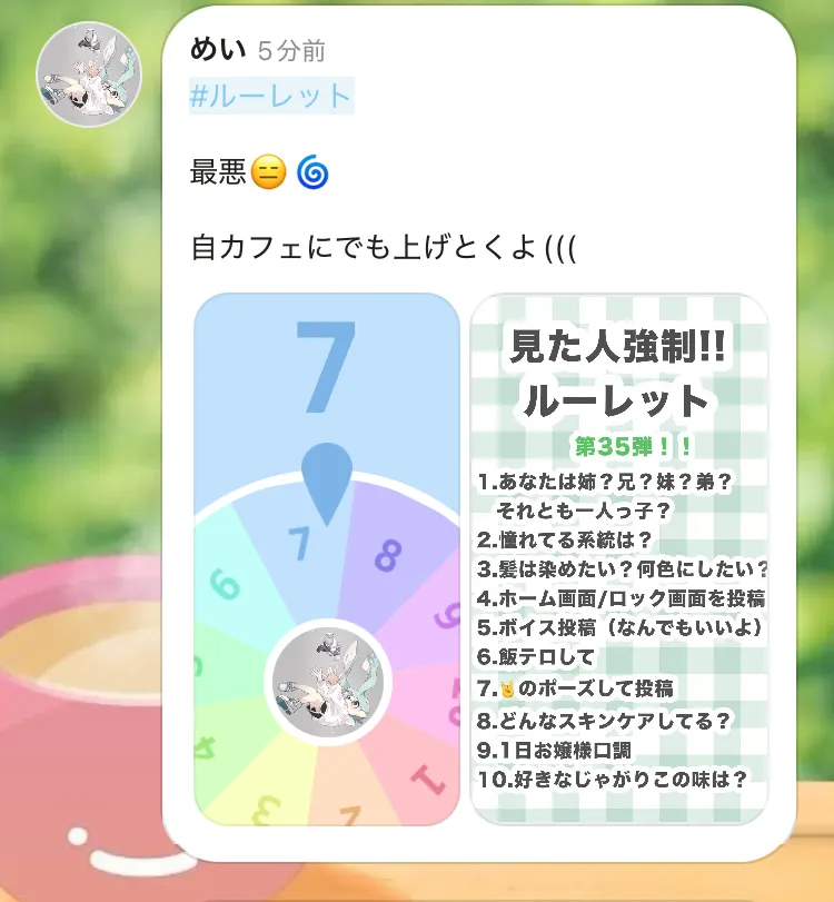 #ルーレット最悪😑🌀自カフェにでも上げとくよ(((