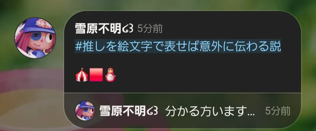 #推しを絵文字で表せば意外に伝わる説🎪🟥🪆