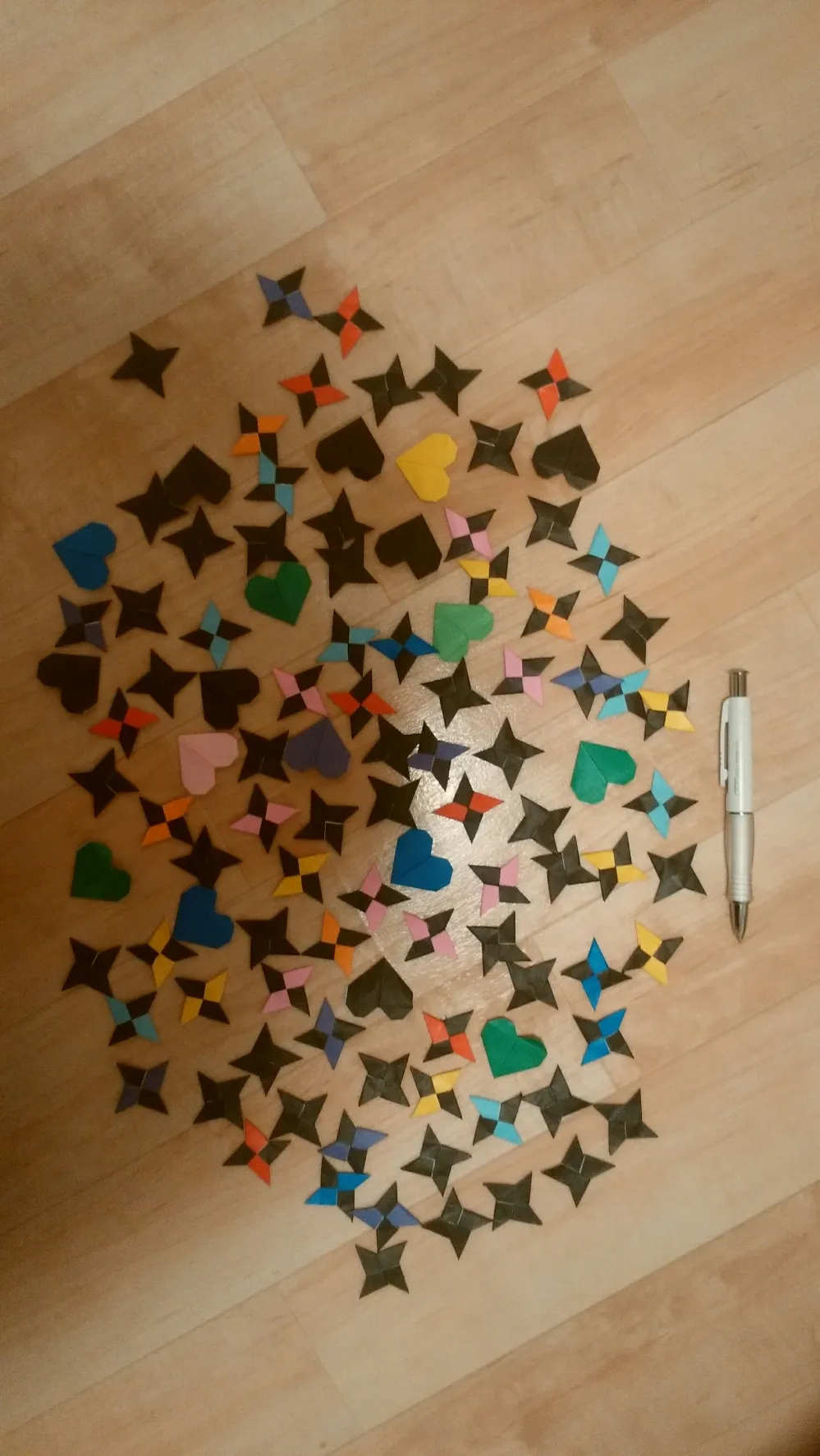 入院してたときの折り紙でこんなに?どんだけ入院ひまなんだよってね。今広げたらめっちゃあった。ほとんど手裏剣だし 笑