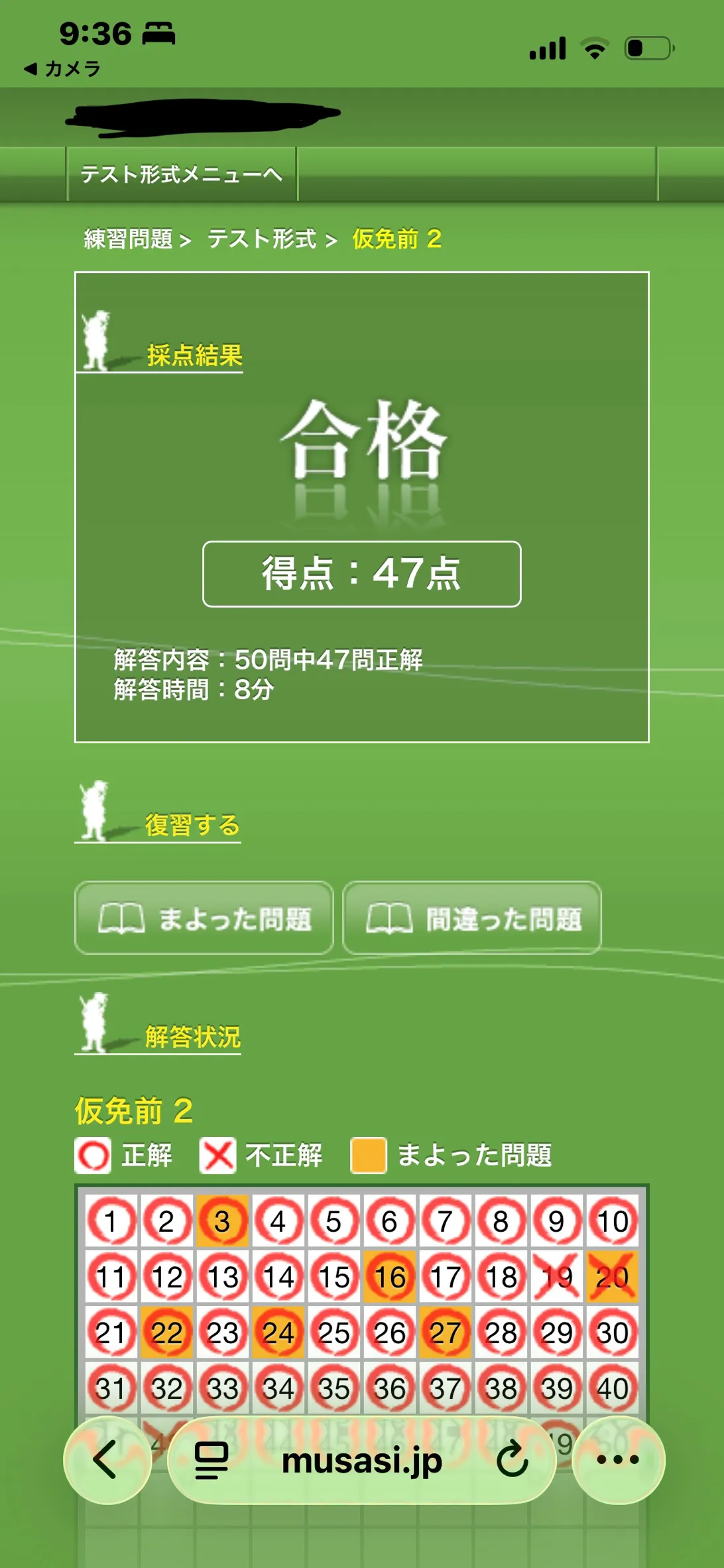 仮免試験の過去問やっと合格点いって泣く