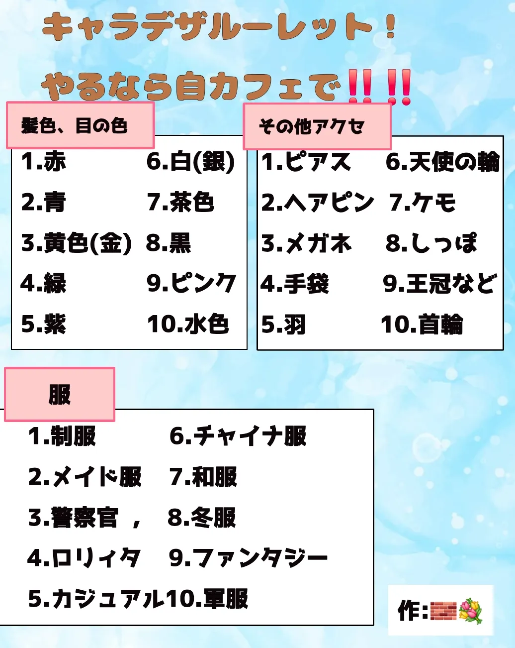 ルーレット作ってみた⚠️複数回想定でつくってます⚠️公式でやる場合はルーレット何回か回してスクショをコメ欄にのせるなりなんなりして工夫してください