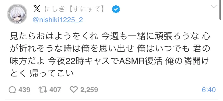 印象は「なーくん推し」「名前の後に天使の羽を付ける」「アイコンがなーくん」!これが印象かな!!覚えてくれてたらほんとに嬉しいです!!