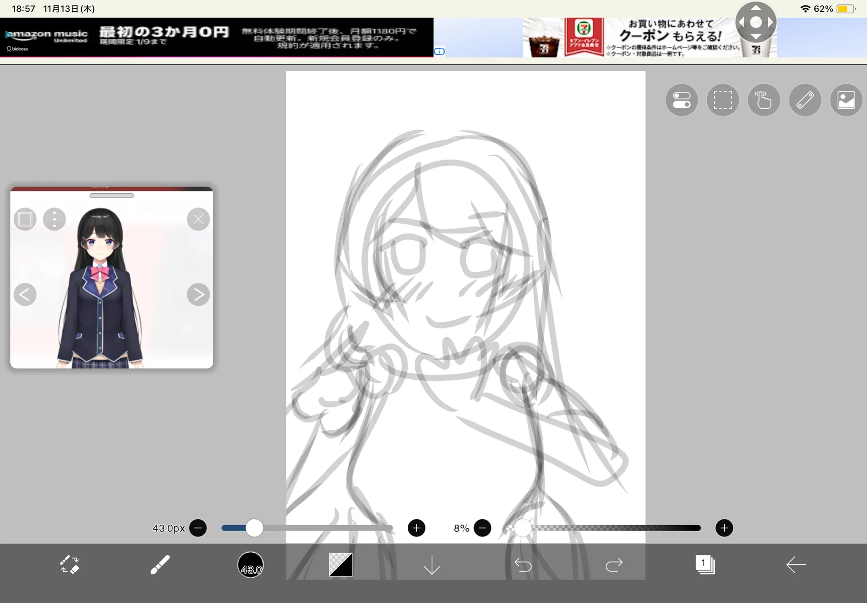 ラフ〜 まじで可愛く描きたいから下描き頑張らな( ᐛ )