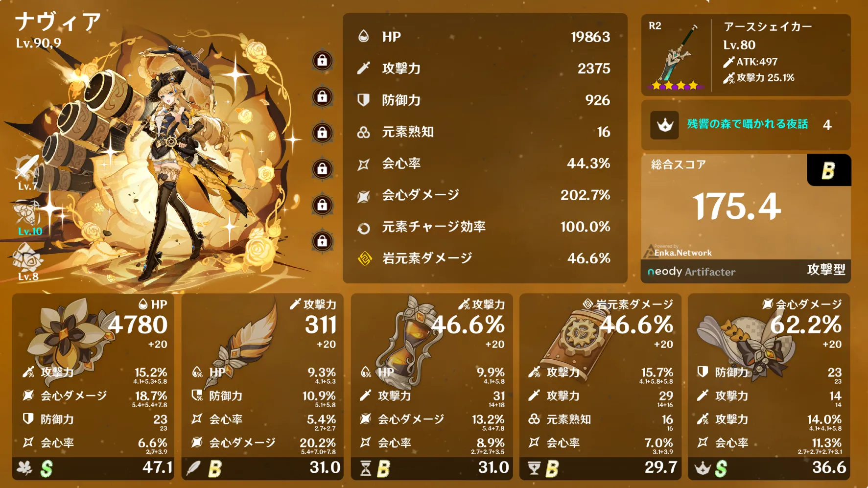 そしてヌヴィの厳選しようとしてるけど厳選全くできてないビルド置いとこう