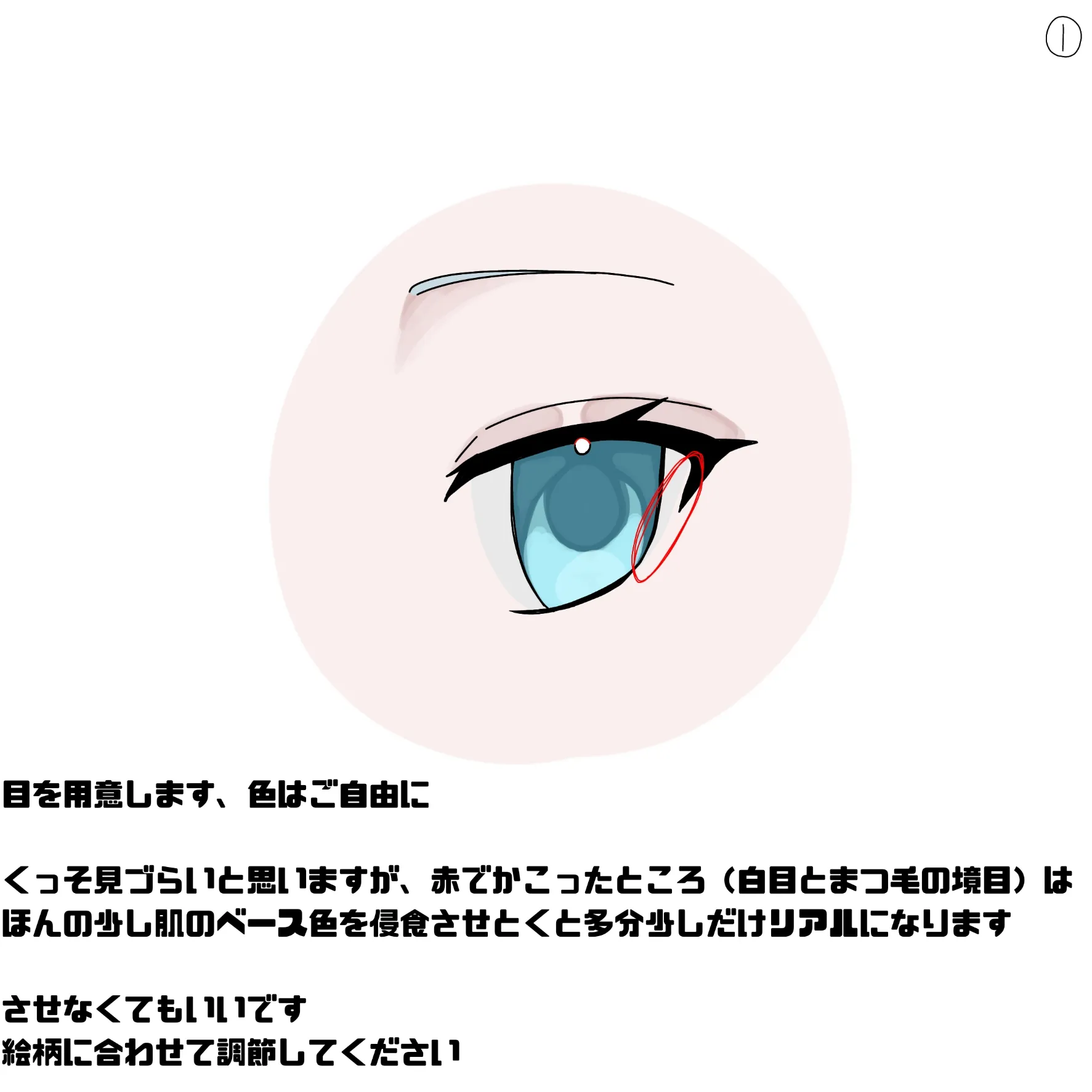 予め肌の色を塗った目の線画を用意します眼球は任意です