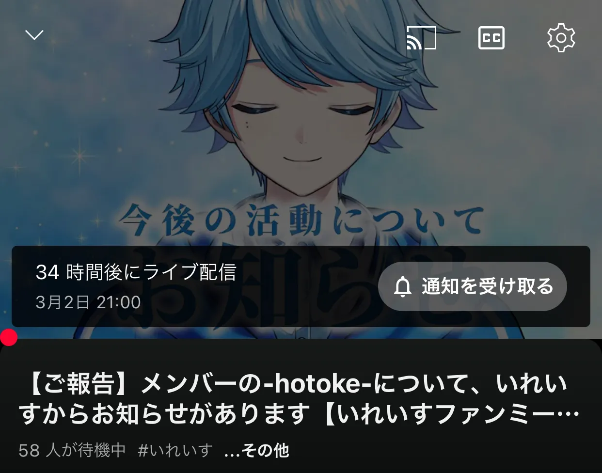 いよいよ今日か~…。まだ心の準備出来てないけどどうなってもいむくんはいむくんだから全て受け入れられるように頑張るね。いむくんがいむくんとしてこれからも生きてくれるなら脱退になっても復帰になっても応援するよ!