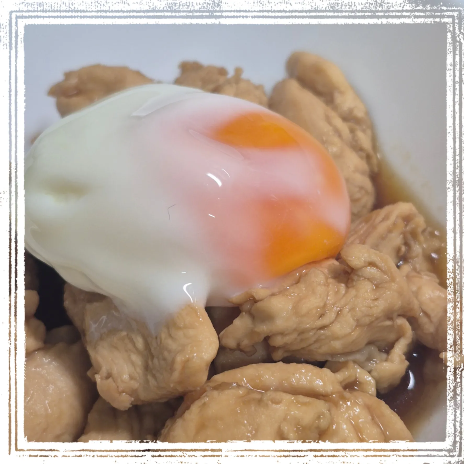 ポン酢で照り煮にしたんだけど、片栗粉ケチりすぎた💦もう少しまぶすんだったよ。ニンニクと生姜も𝙸𝙽してちょっぴりスタミナ系になったので温玉のせ!…ご飯が進みます