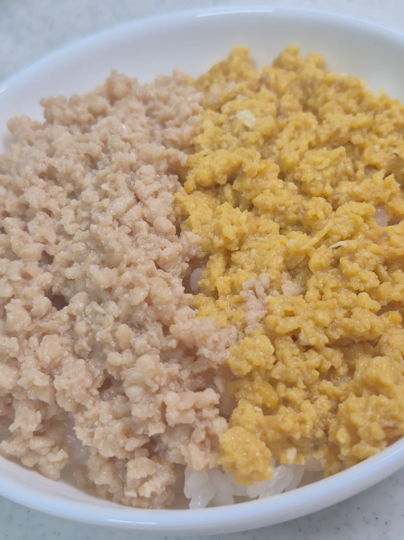 二日連続見た目的には同じ感じだけど味違うからいいよね!!🤣今日はそぼろ丼。卵いつもはお出汁と砂糖で甘めのにするんだけど今日は醤油と砂糖で甘じょっぱ系。