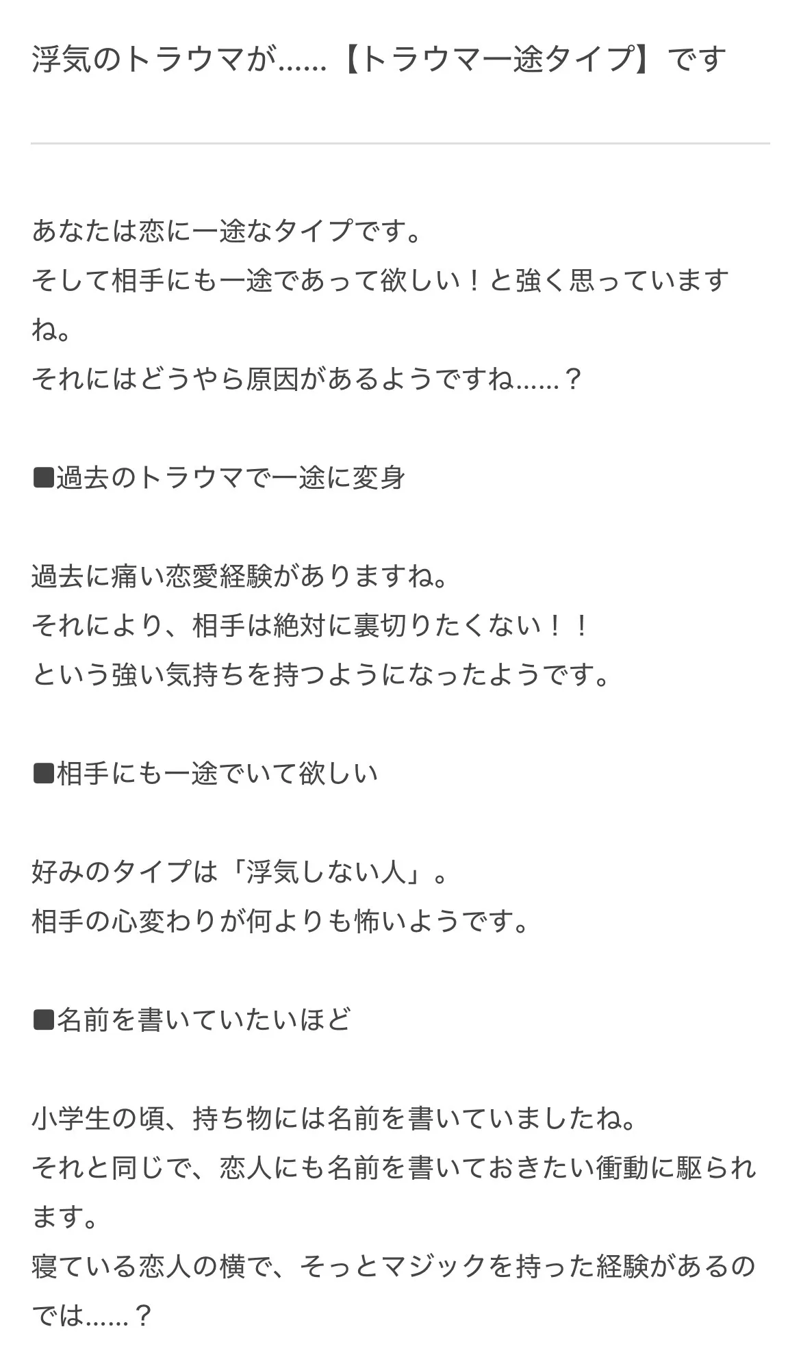 私がどうかはあんまりだけど本当に一途って報われないわね