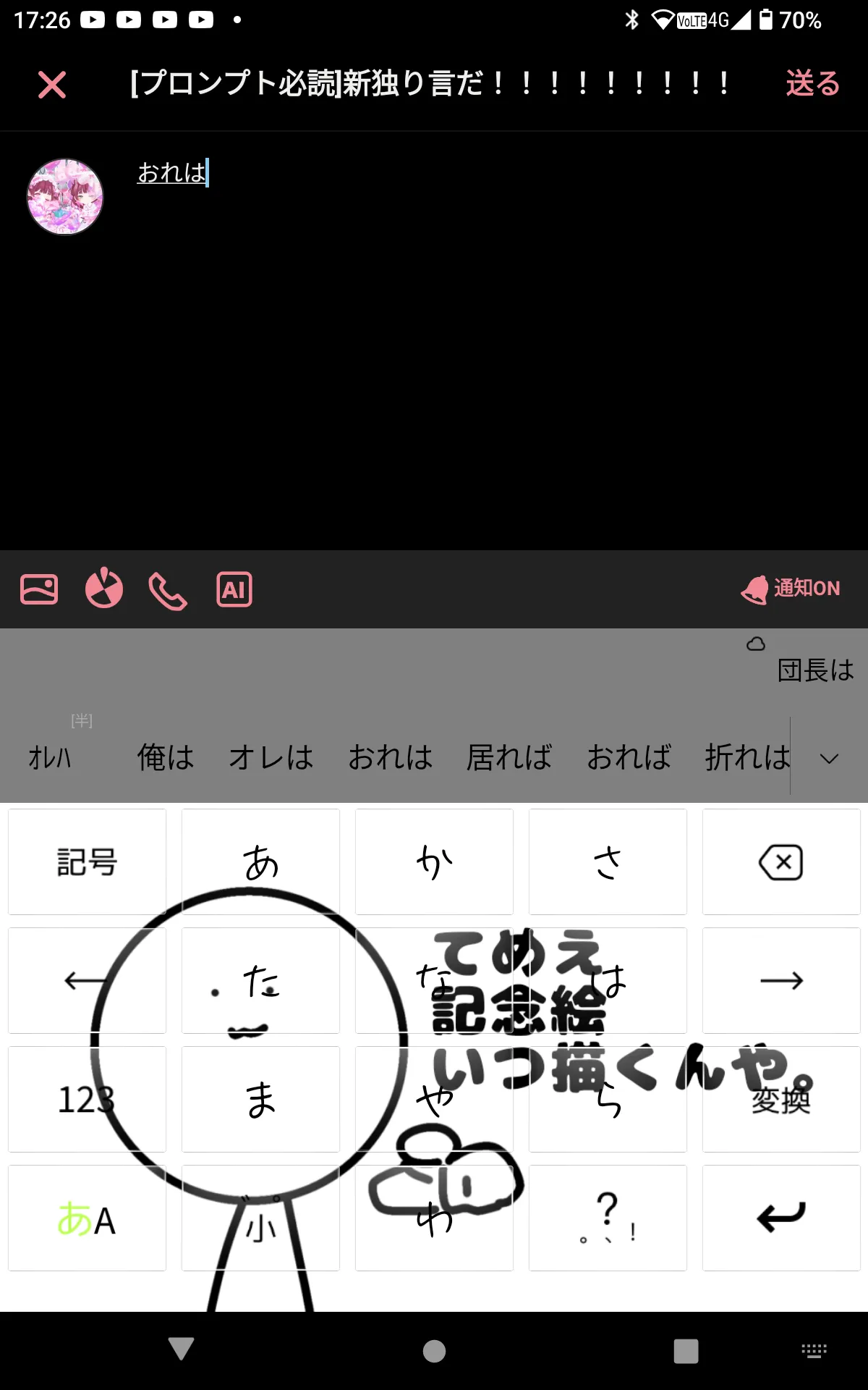 「おれは」ってやったら団長はってSimejiで出てきた