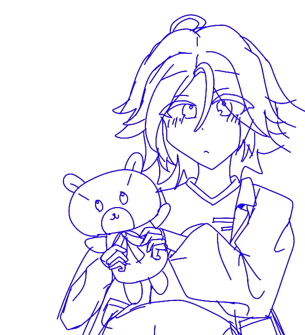 ラフ起きたら近くに雷ばごーん!!って落ちたから雷に怖がってるこはくん描きたかった()雷さんインスピありがとねミニミニクレビとぬいの顔面はしんだ服のシワ書き足してくる
