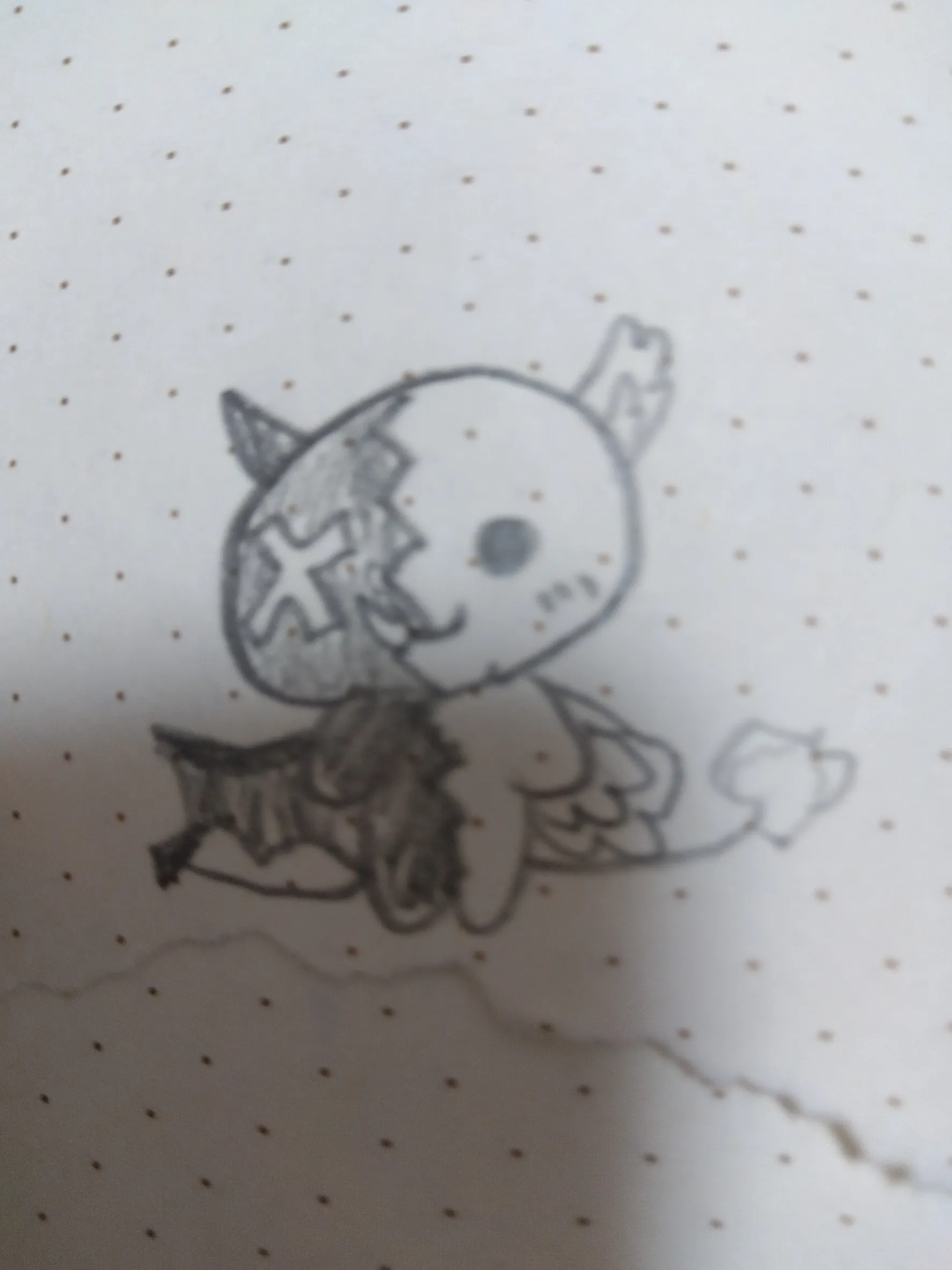昔のノートから出てきた人外描いたっ←多分小2、3くらい? 今→