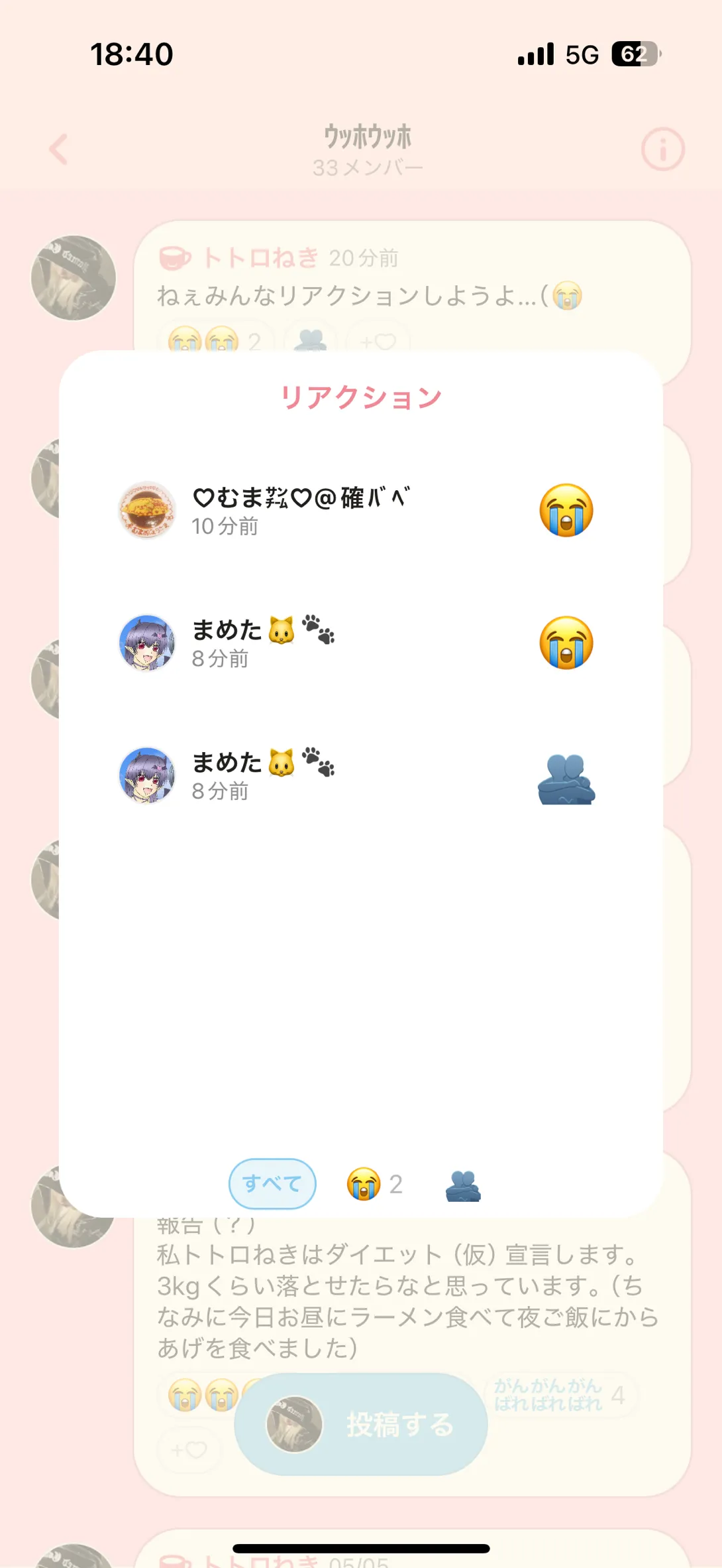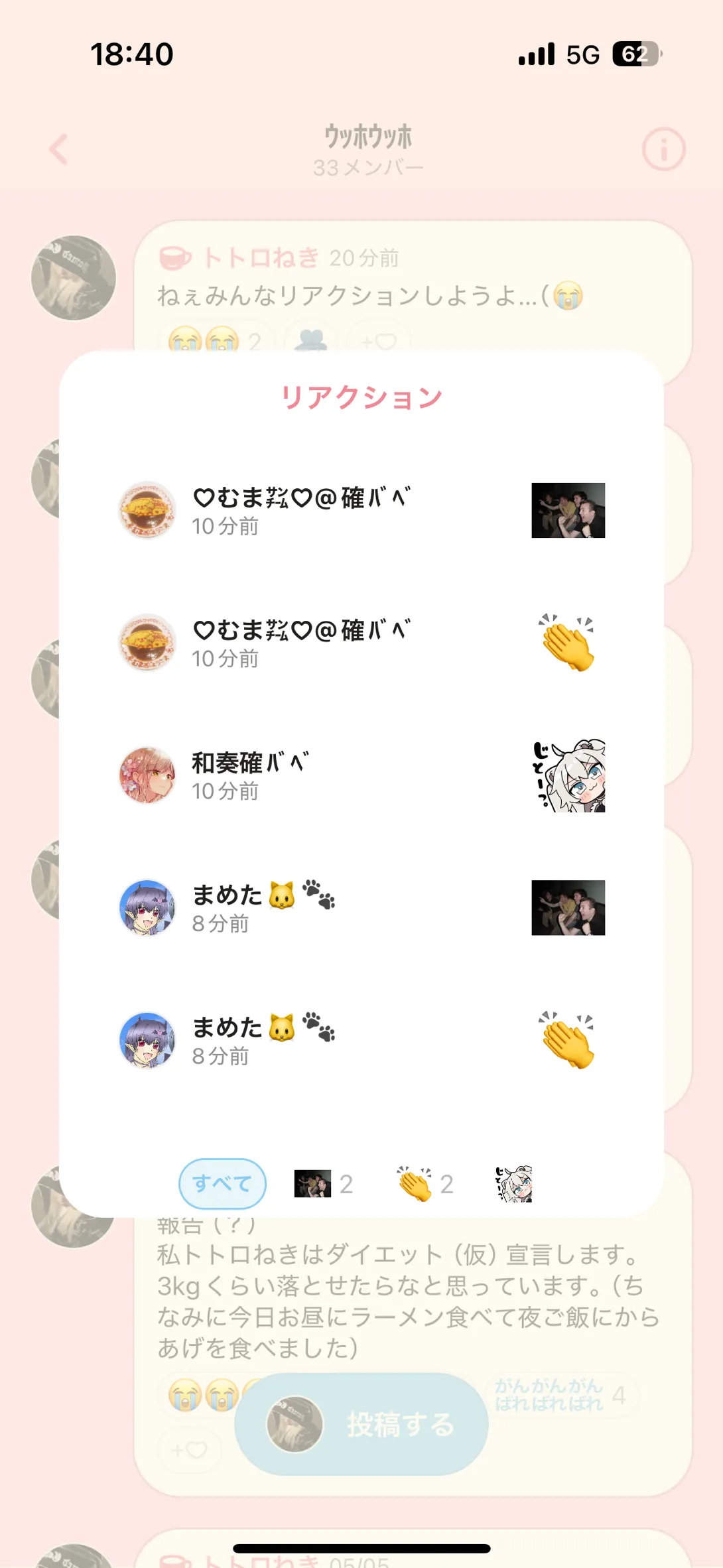 下の投稿にリアクションをしてくれたみんな‼️大好き😘(((((