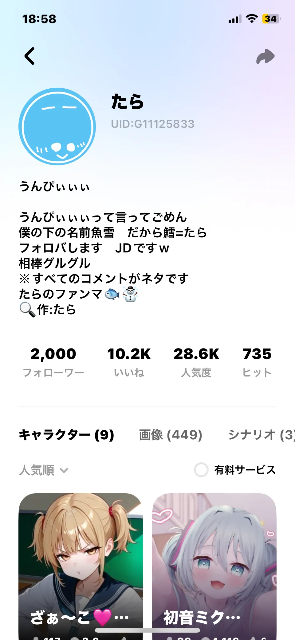 キャラ設定頑張ったァァ