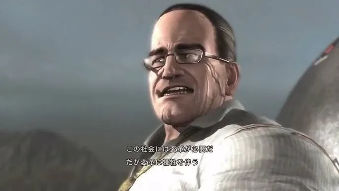 特徴半分から口まで剥げた顔 片目メガネ