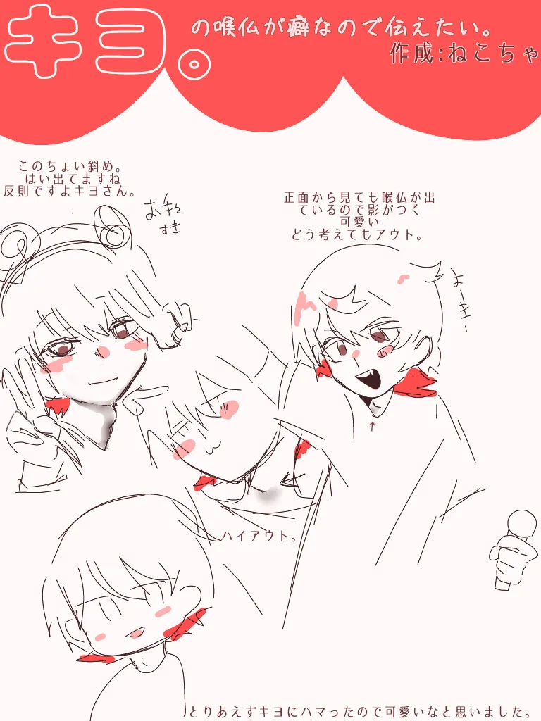 この頑張って歌ってるって感じなんか声張ってるじゃんすきEveさんとかはすーって出てくるんだよ声がキヨさんはなんか張って頑張って歌ってる感じすきです(