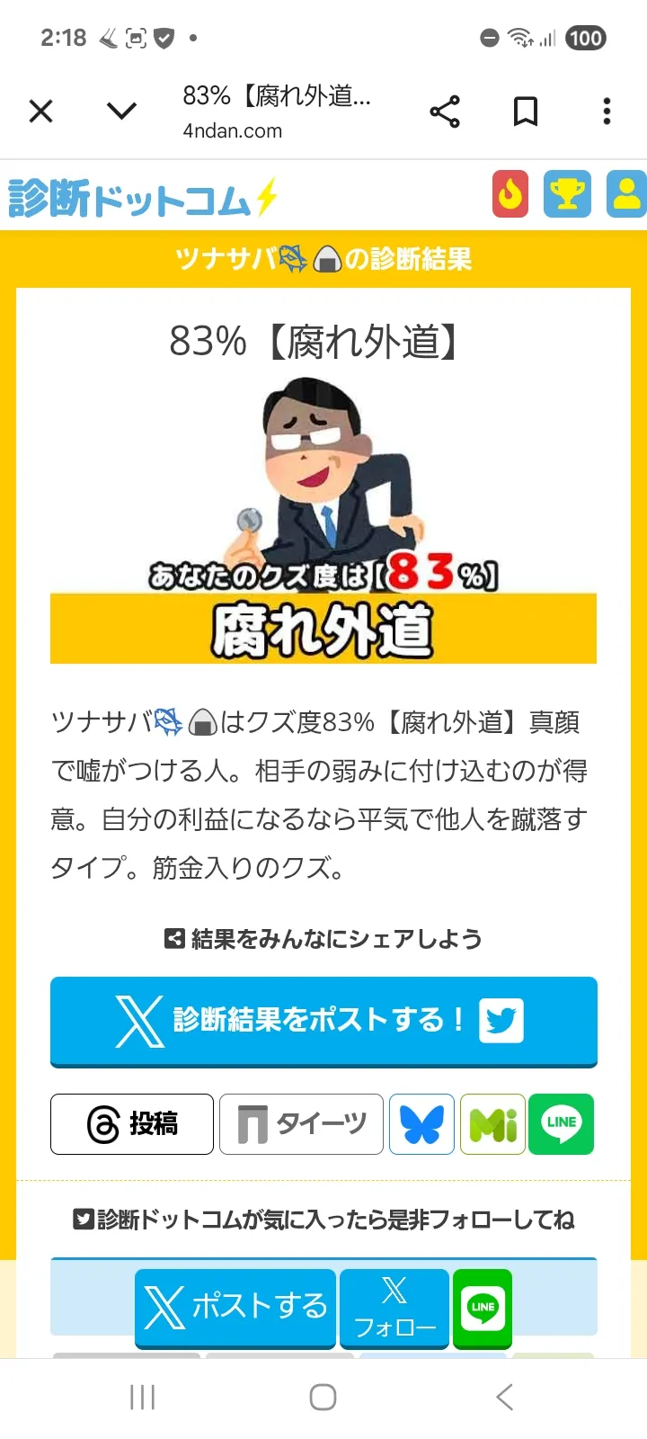 2026/1/29 02:21まじぎゅんぎゅんクズ過ぎて滅〜☆どこまで性格悪いつもりなの〜ああー俺はどうせクズですよ〜って言いたいわけかんだってさ☆クズに目覚めてさもう終わりにしよう☆(前は100だった☆)