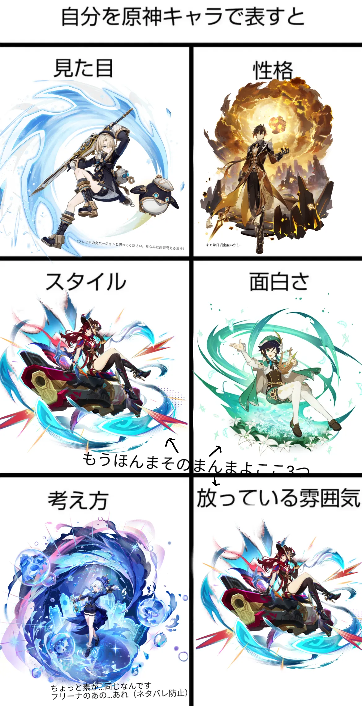 ホヨラボで上げたものをここにも置いとく「自分を原神キャラで表すと」風属性多め