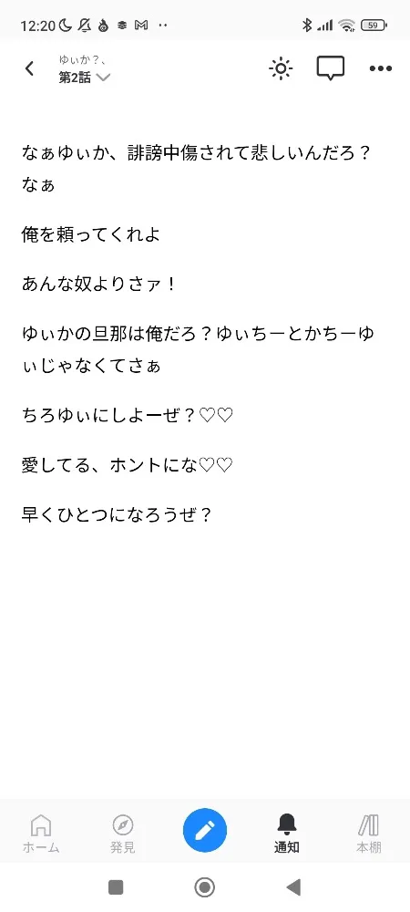テラーノベルでちょこもち(元ちょこみんと。)のストーカーが出ました