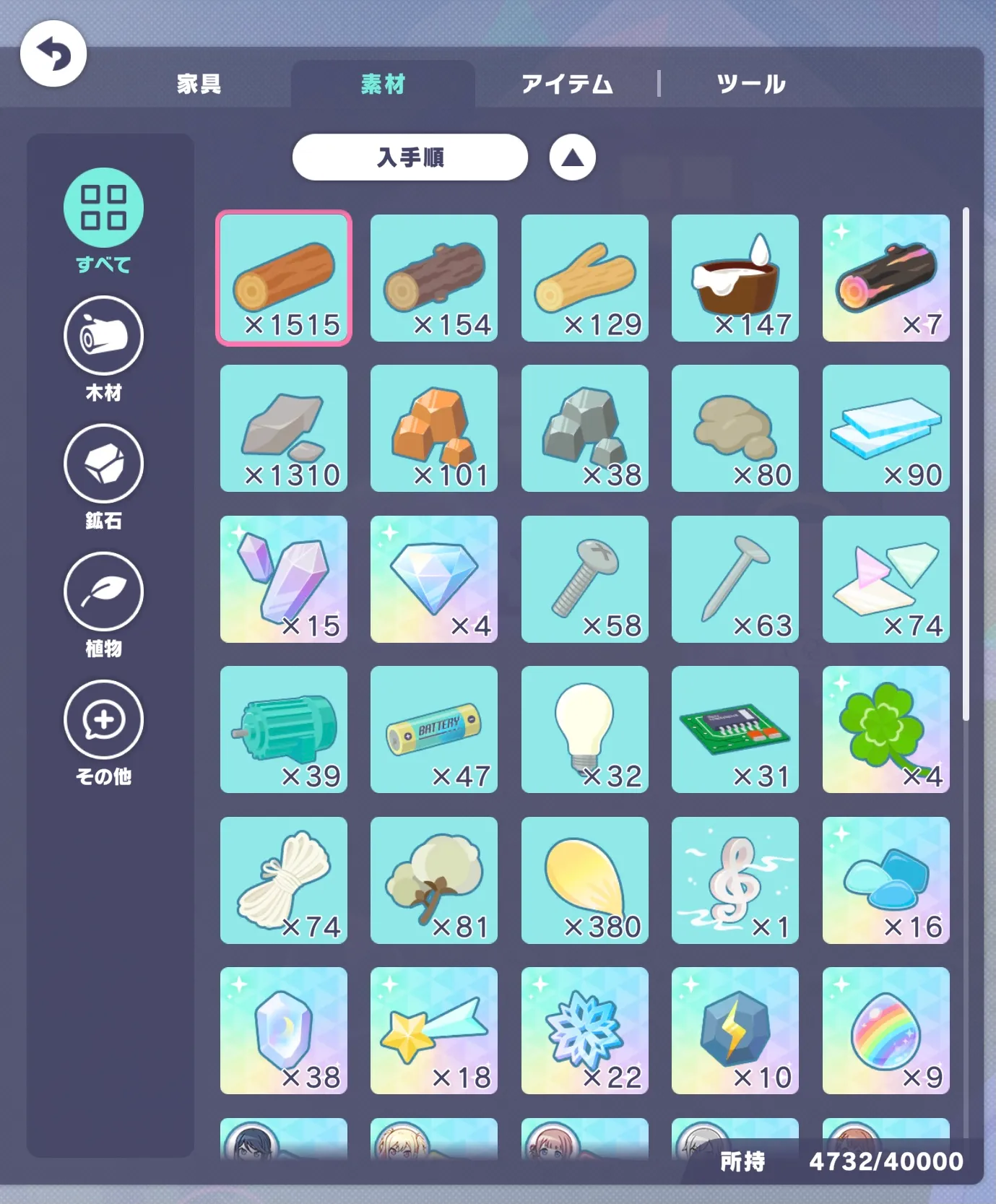 マイセカイの素材17時更新だから17時までに素材回収しないと…😭😭