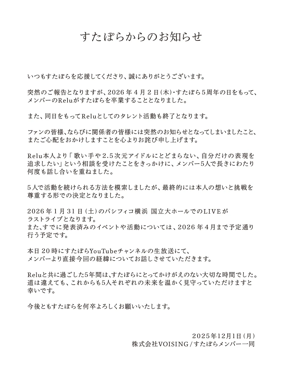 応援するしか無いよね…ずっと追いかけてた訳では無いけどやっぱ寂しい…。別の形で関わってくれるなら嬉しいけど🎼さんみたいな形になっちゃったら…とか考えちゃってドキドキしてる、