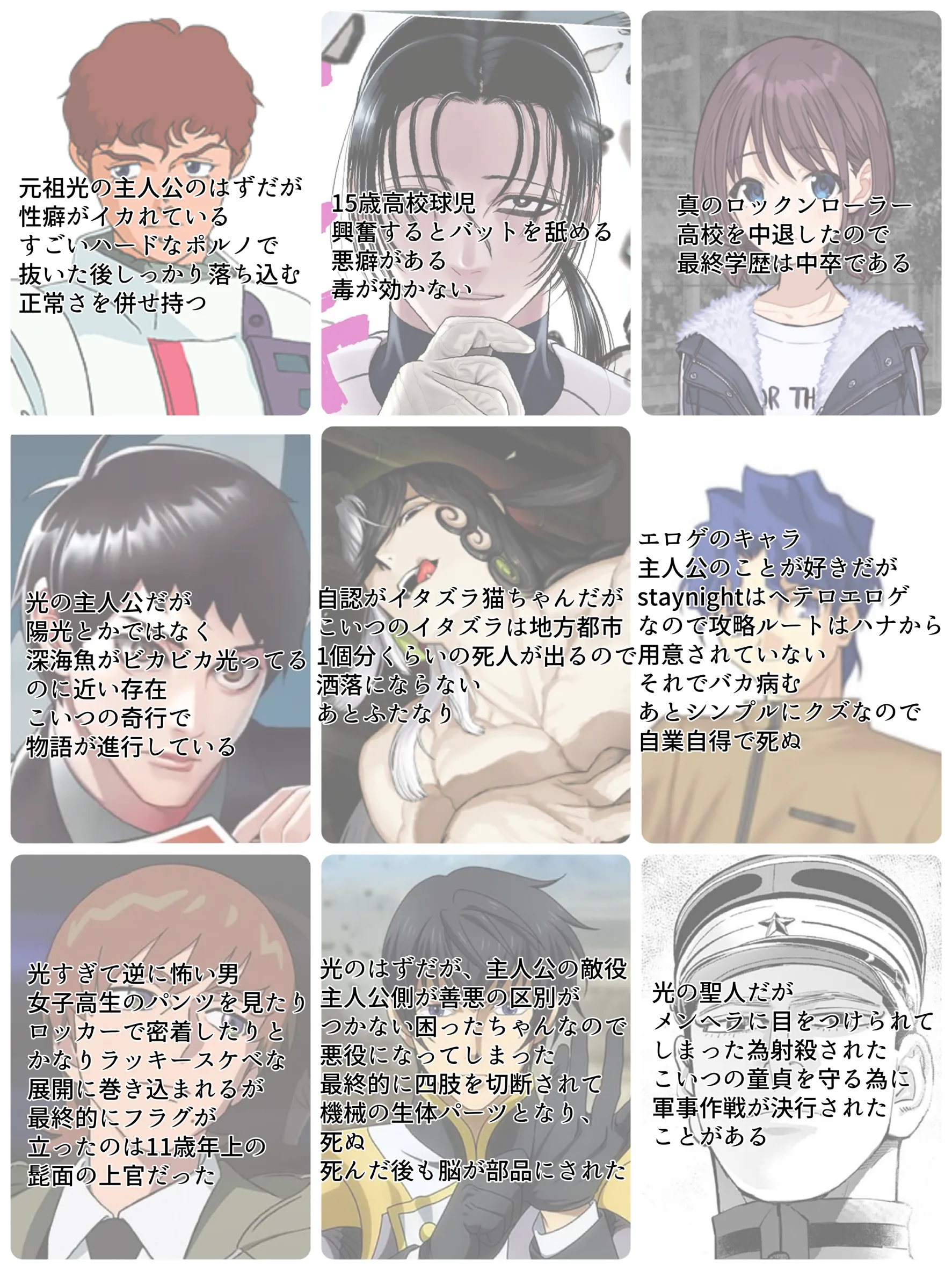 好きなキャラ一覧画像です