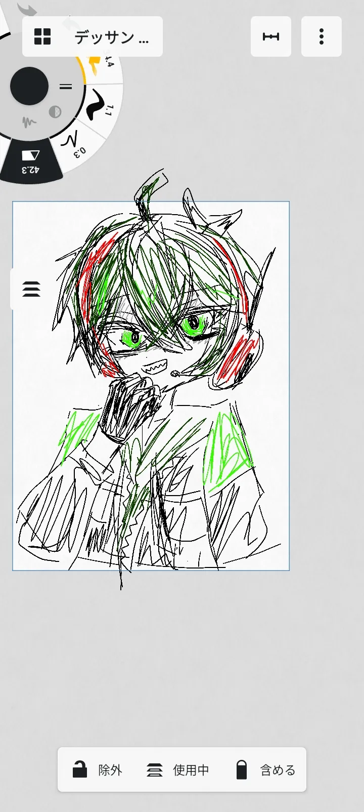 いたずらっ子組カラーリングがファミマなんだよな悪いお顔を描きたいので描いてるしゃけさんはわいての衣装にしてるなぜなら描いたことないから