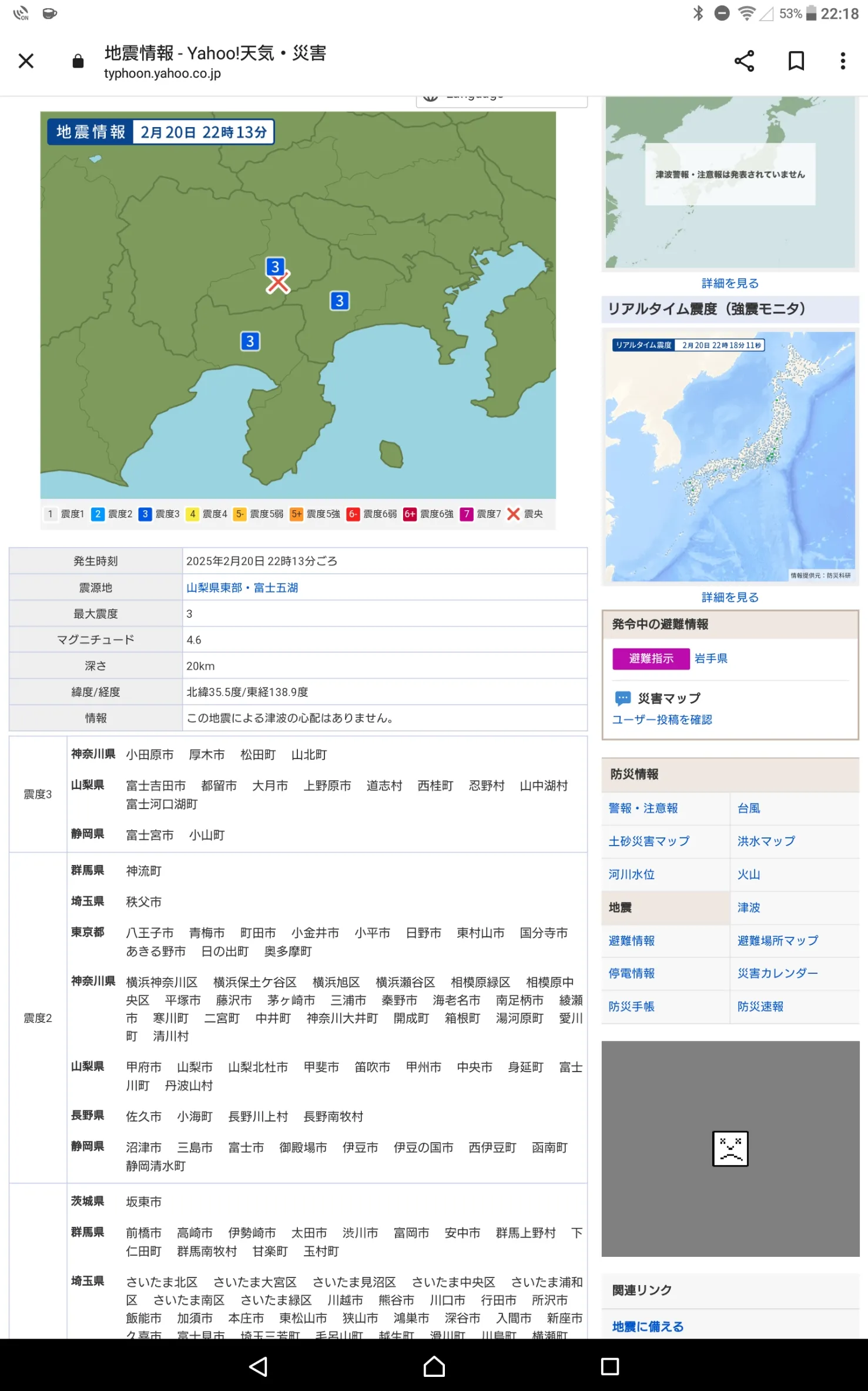 てか、私のところも震度1で揺れてたわ、