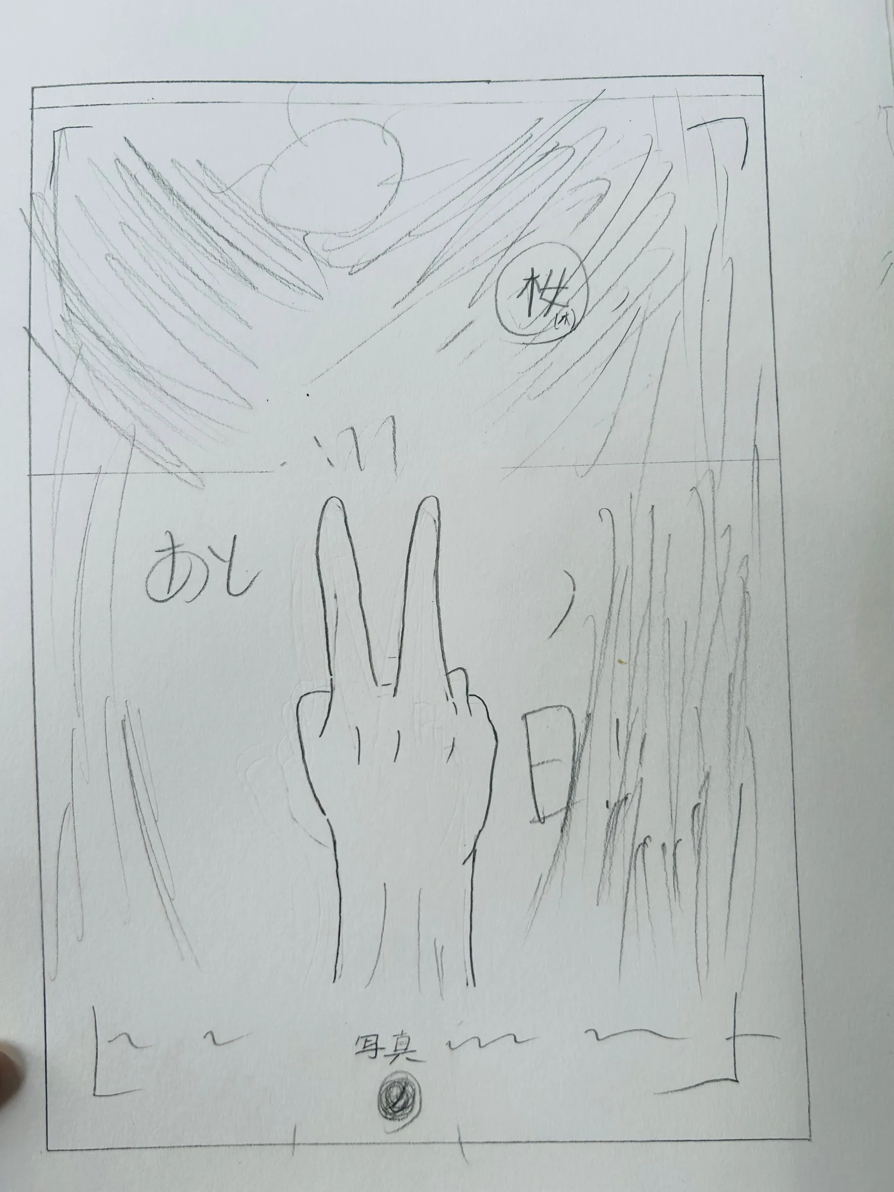上半身の後ろ姿を描いて……