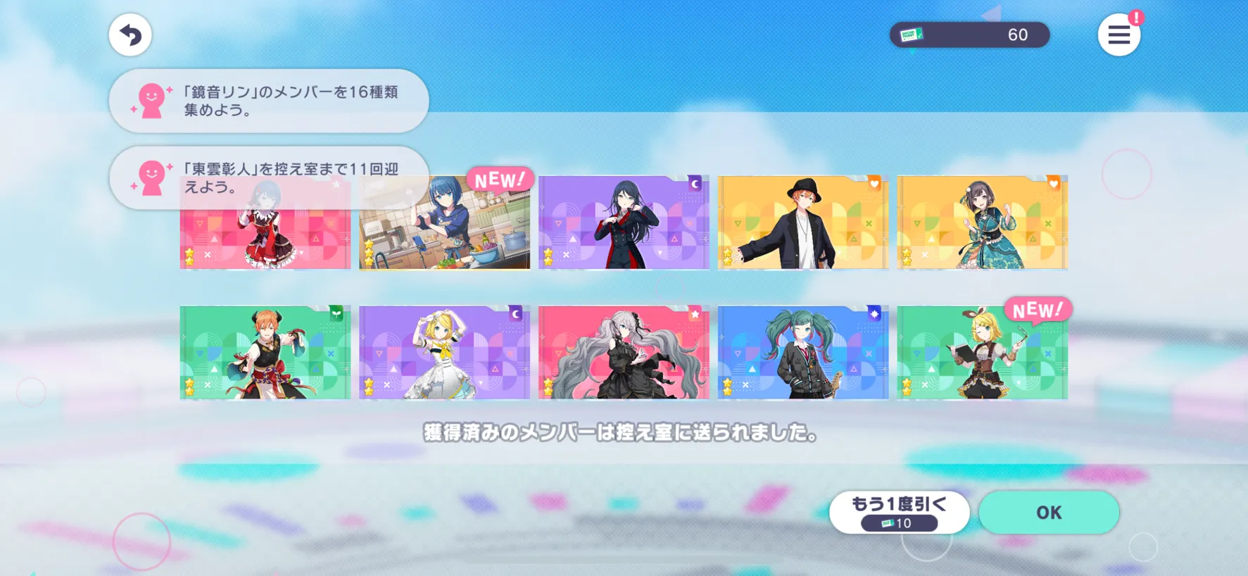 ガチャ結果。1部忘れた