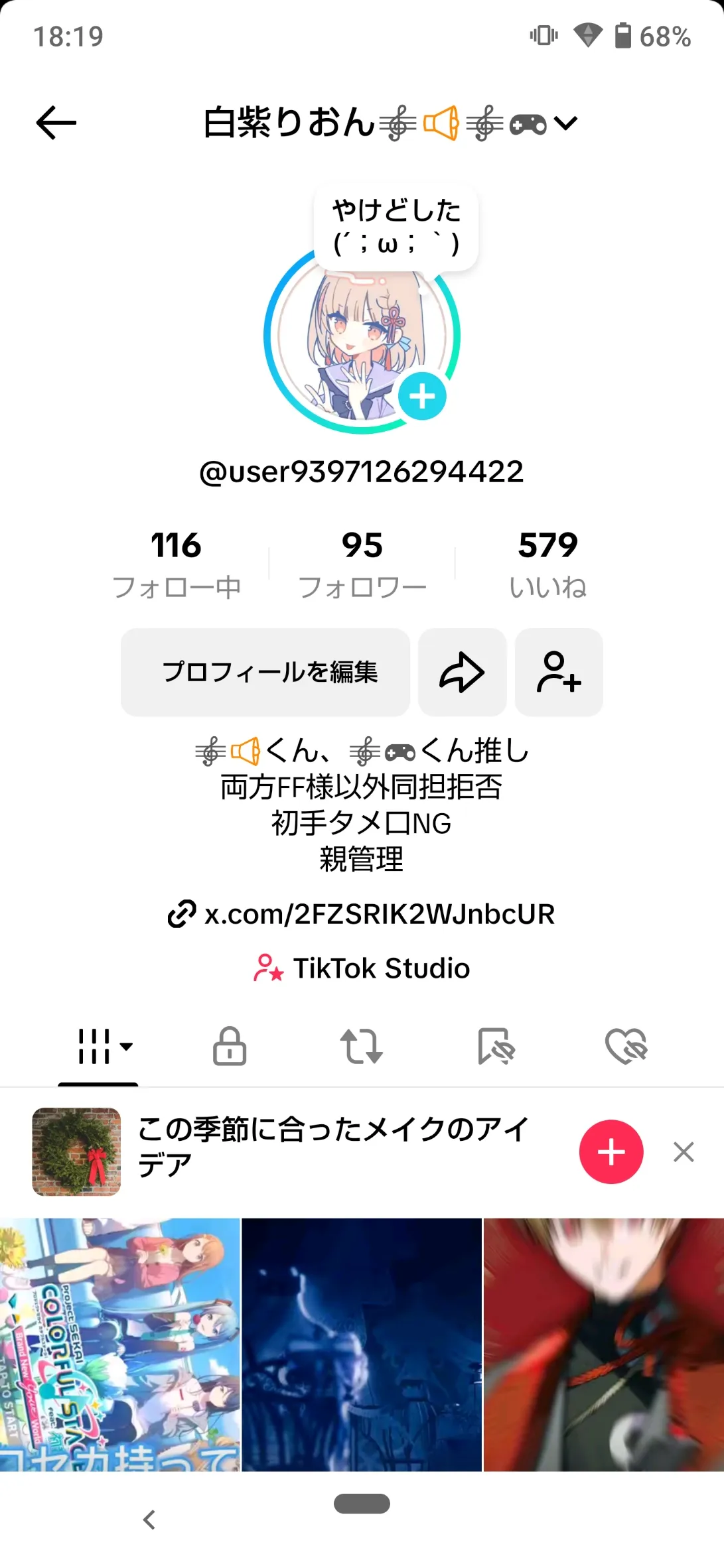 Tiktokで出した実写前髪は下ろすと顔無くなるから横にしてる1枚目ワンク