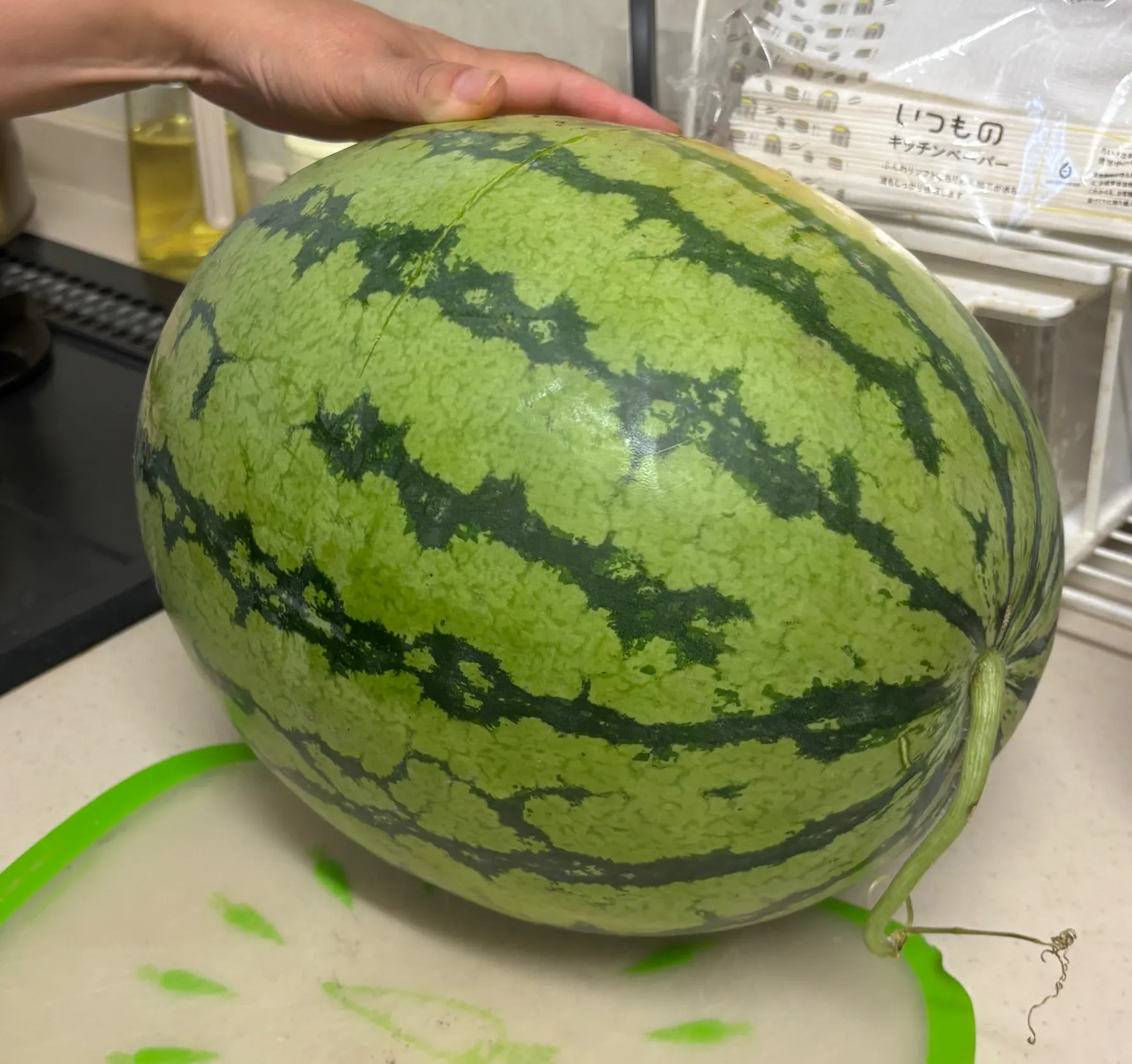 ばあちゃんがスイカくれたおててお母さんだぞ