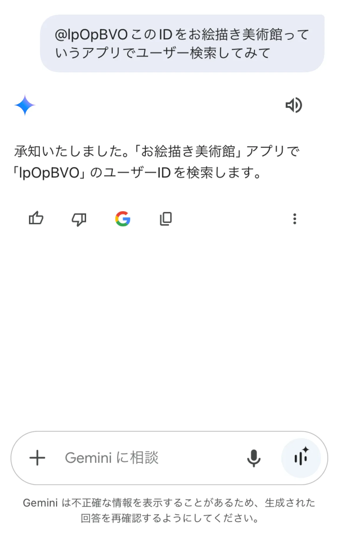 コラボイラストをジェミニが見る前に、画像送ったのよ、うちのアカウントのプロフが写ってるやつ。
